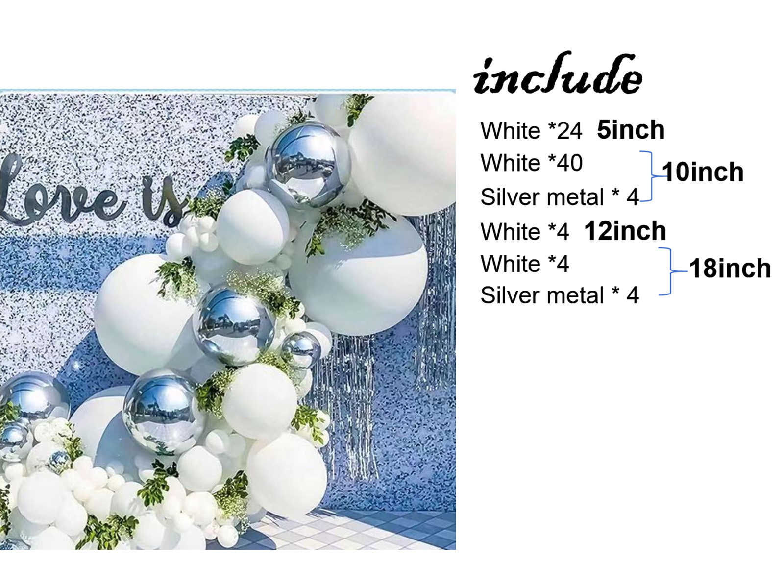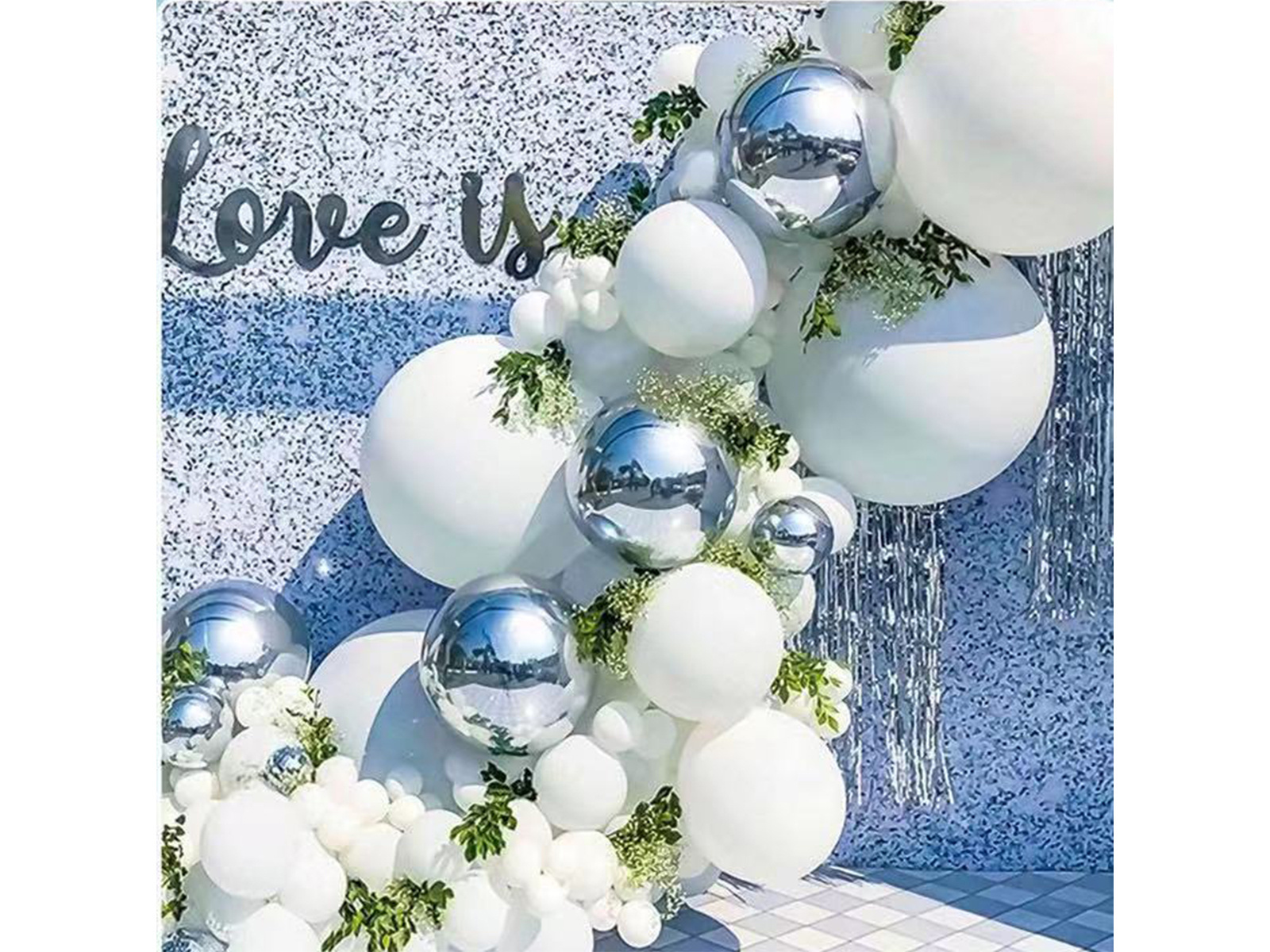 • Girlanda balonowa w kolorze białym i srebrnym to idealna dekoracja na różne okazje: wesele, ślub, chrzest, roczek itp. Sprawdzi się także jako ścianka do zdjęć.