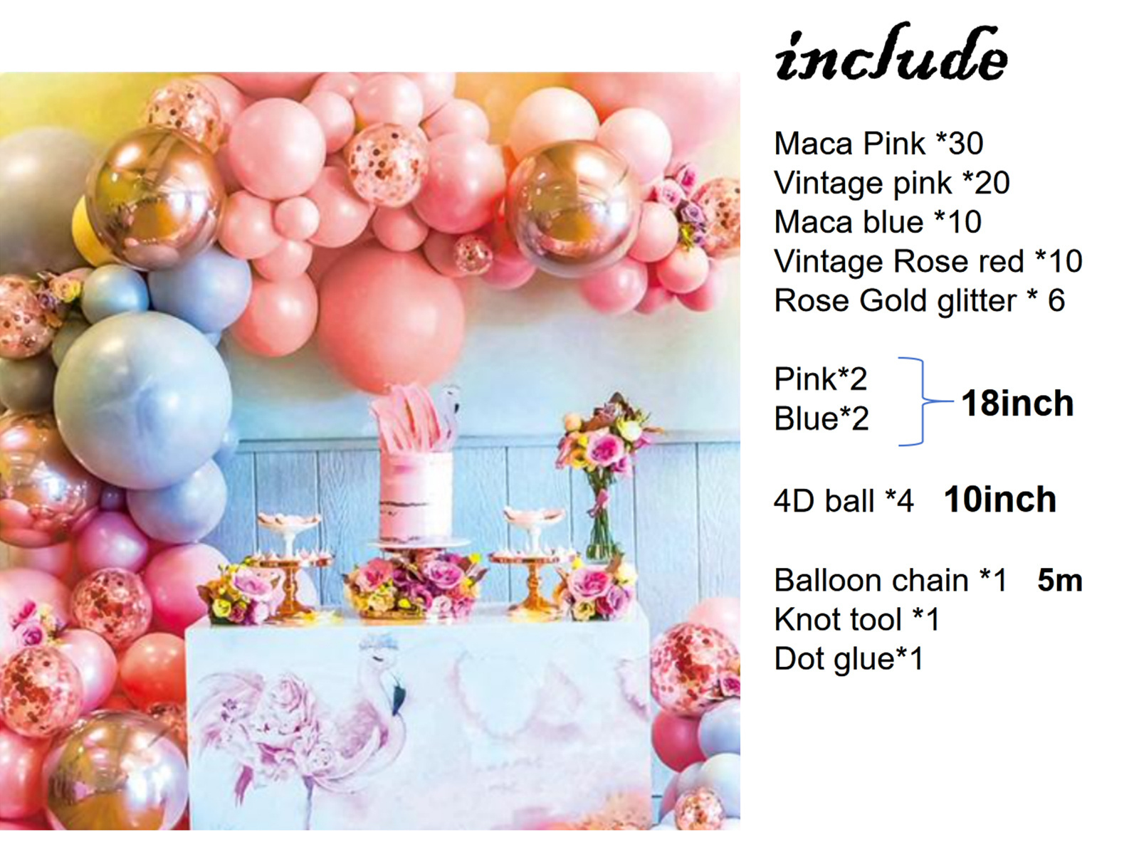Zestaw balonów do girlandy balonowej różowo-niebieski - 84szt.