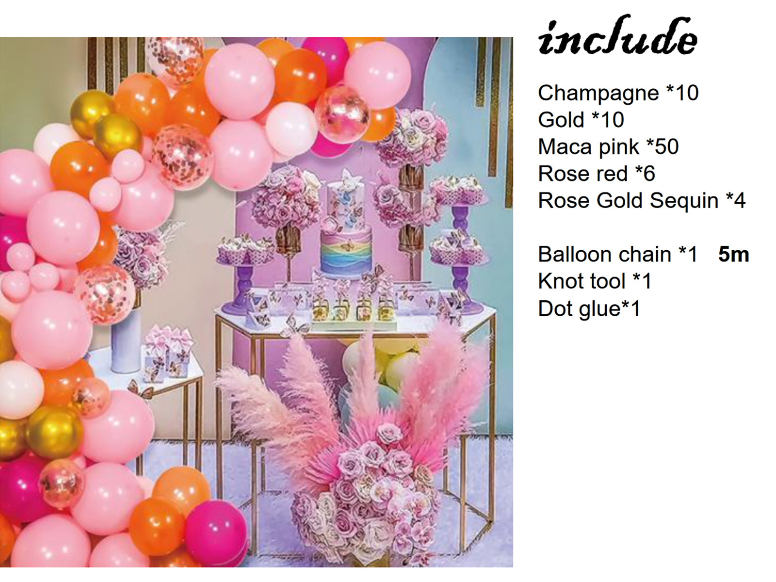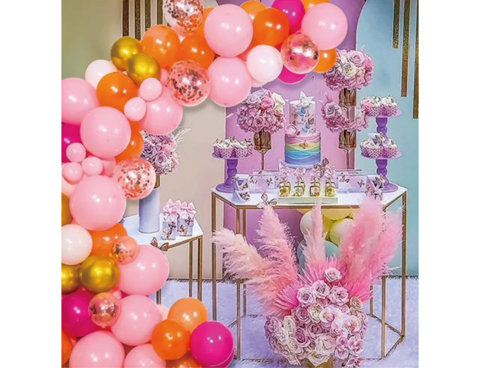 Léggömb készlet rózsaszín és arany lufi füzérhez - 80 db.