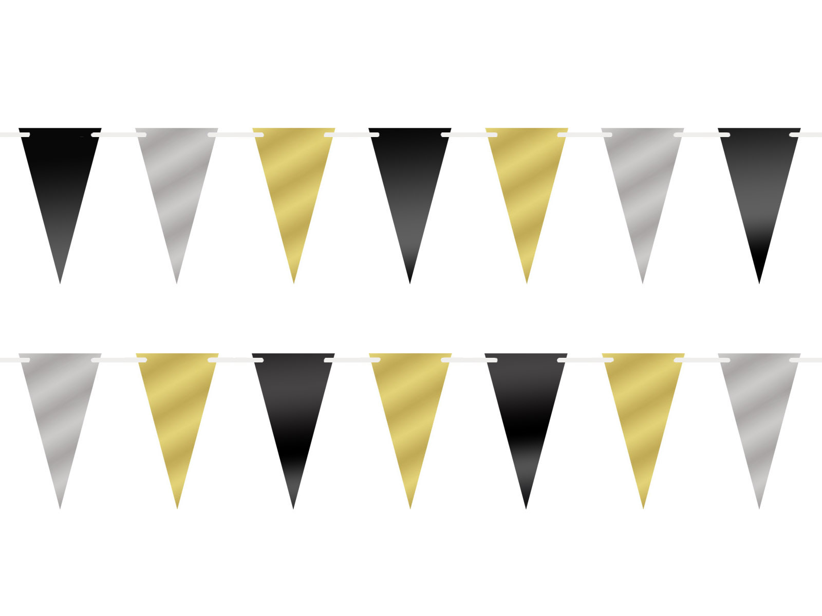 Emelje ki ünnepségeit exkluzív bannerünkkel, amely luxus elemet hoz bármely helyiség dekorációjába. Tökéletes szilveszterre, születésnapokra vagy elegáns partikra, ez a banner fémezett papírból készült, amely csillogást és stílust kínál. Az arany, ezüst és fekete árnyalatú színösszeállítás egyedi hangulatot és eleganciát kölcsönöz.