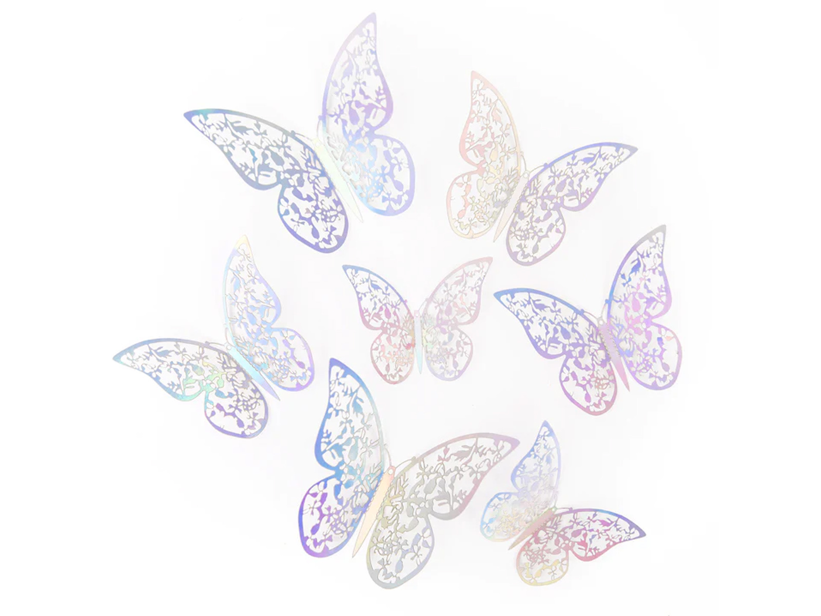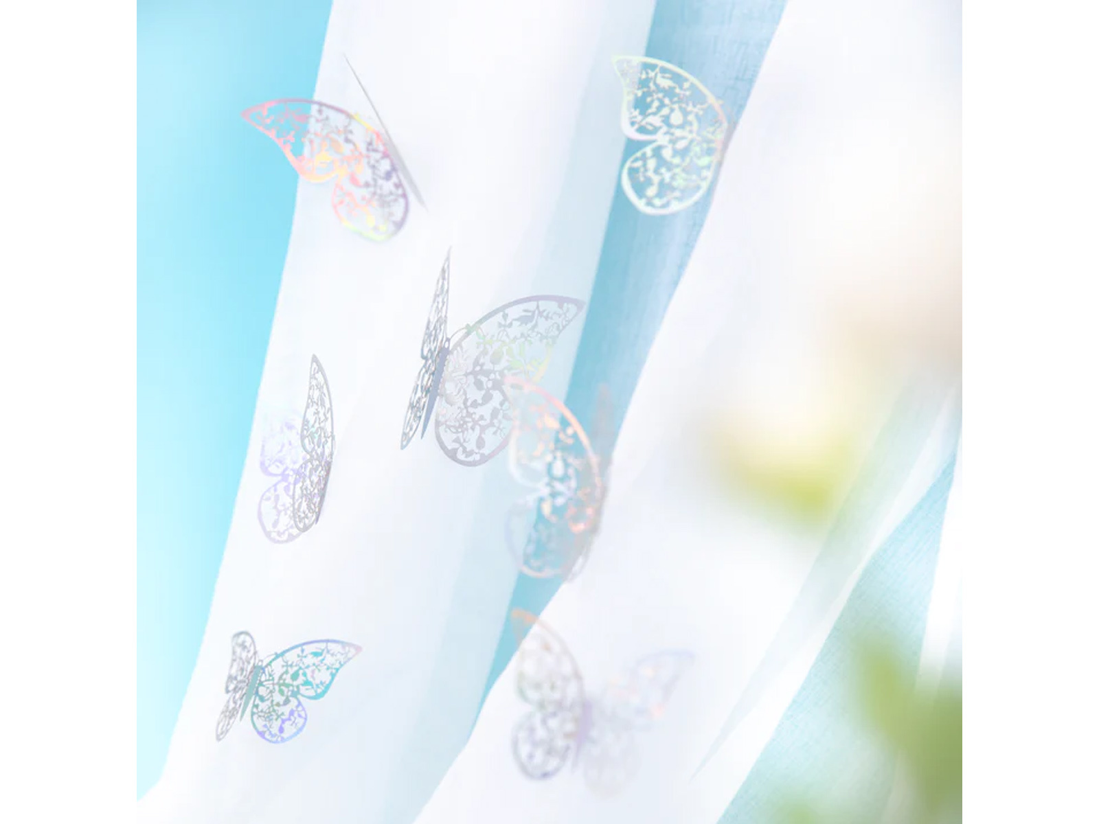 Ezüst holografikus csipke pillangó matricák - 12 db.