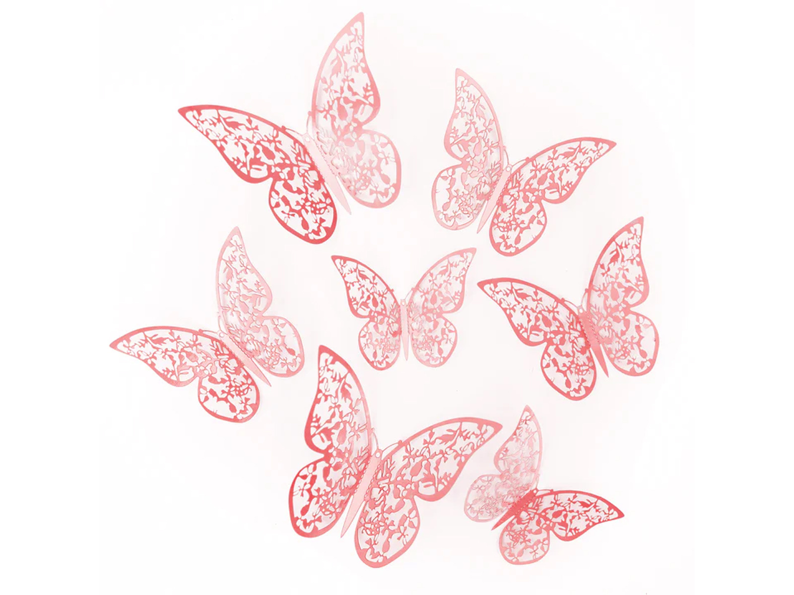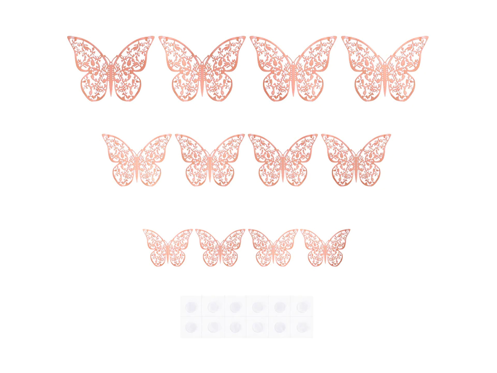 Csipke pillangó matricák rózsaszín arany - 12 db.