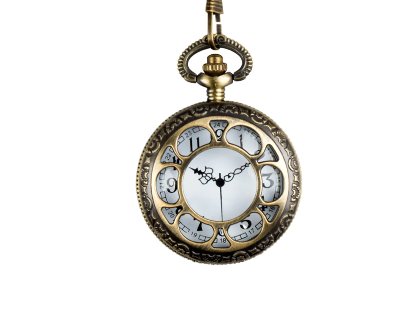 Bár ez az óra nem mutatja a valós időt, a tökéletes kiegészítő, amely titokzatosságot és eredetiséget kölcsönöz az öltözékének. Elegáns lánccal ellátott, könnyen rögzíthető mellényre vagy kabátra, így mindig látható és bemutatásra kész.