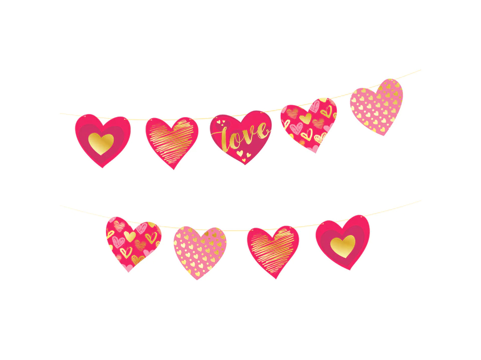 Papírfüzér Szívek mintás papírfüzér - 200 cm - 1 db.