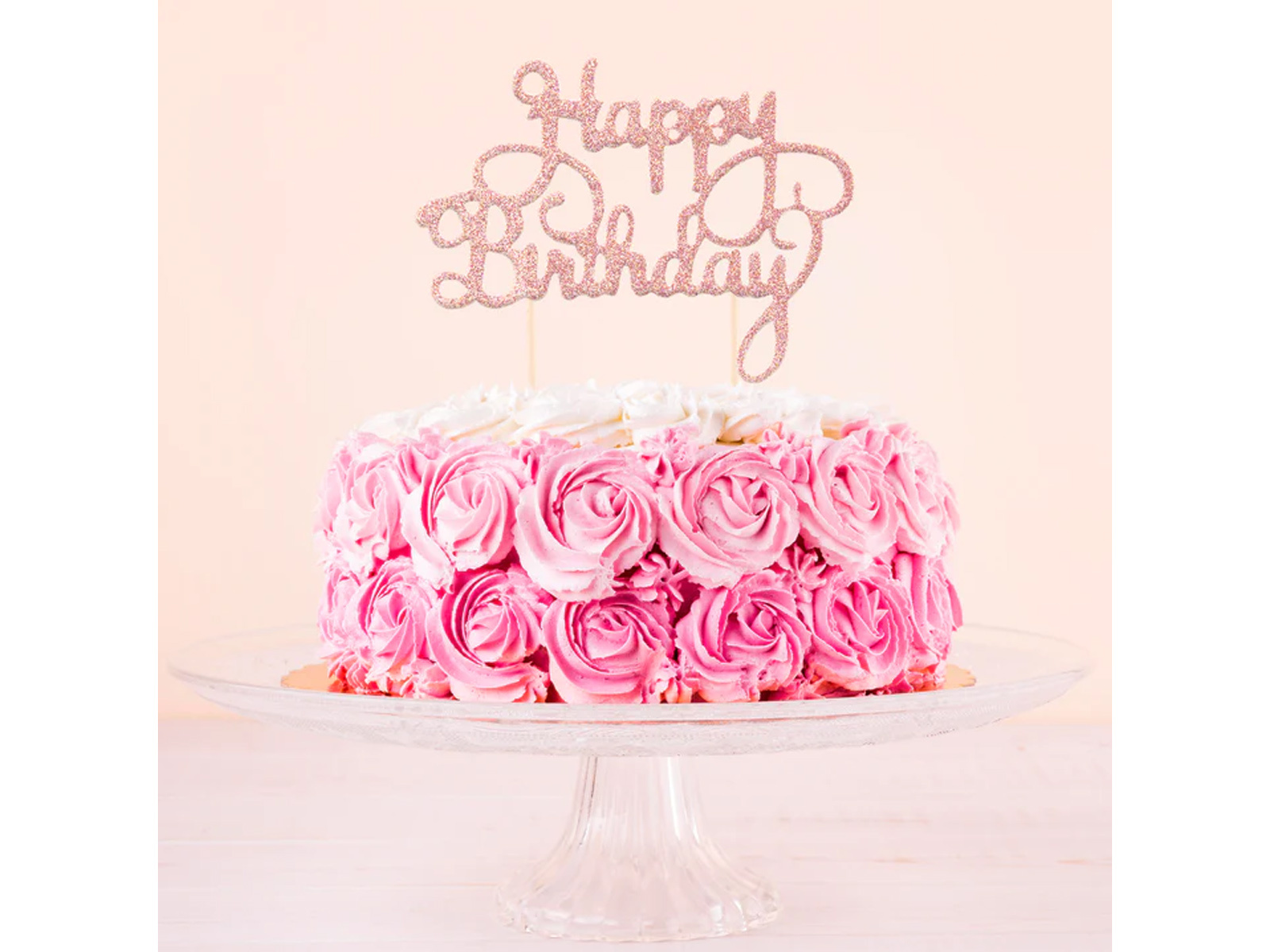 Boldog születésnapot tortadísz csillogó rózsaszín arany - 1 db.