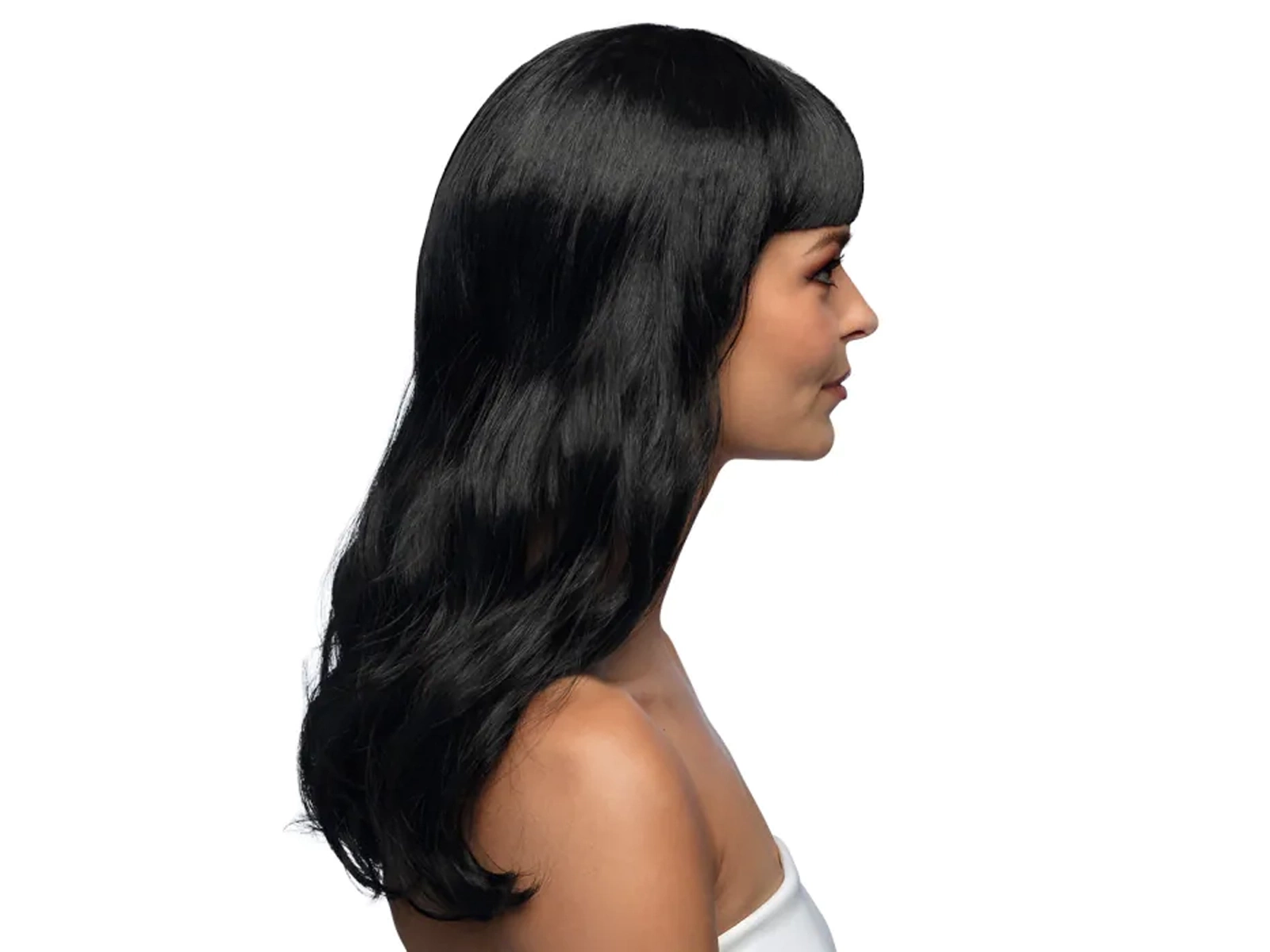 Változtassa meg megjelenését egy pillanat alatt ezzel az elegáns, fekete parókával, hosszú és hullámos hajjal. Ideális különböző alkalmakra, a farsangtól a tematikus partikig vagy akár színházi előadásokhoz is. A paróka divatos rojtokkal rendelkezik, amelyek karaktert és modernitást kölcsönöznek minden megjelenésnek.