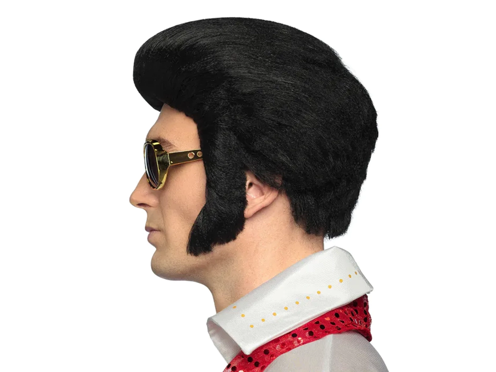 Érezd a szellemét egy igazi zenei legenda a Rock 'n Roll parókánkkal, amelyet a felejthetetlen Elvis Presley stílusa ihletett. Tökéletes karneváli vagy amerikai témájú partikra, és tökéletesen kiegészíti a rock 'n' roll korszak jelmezét.