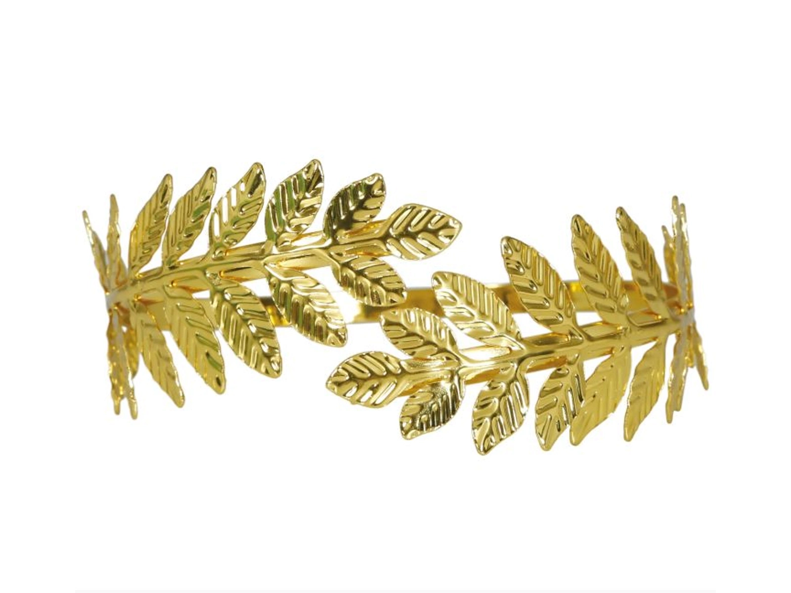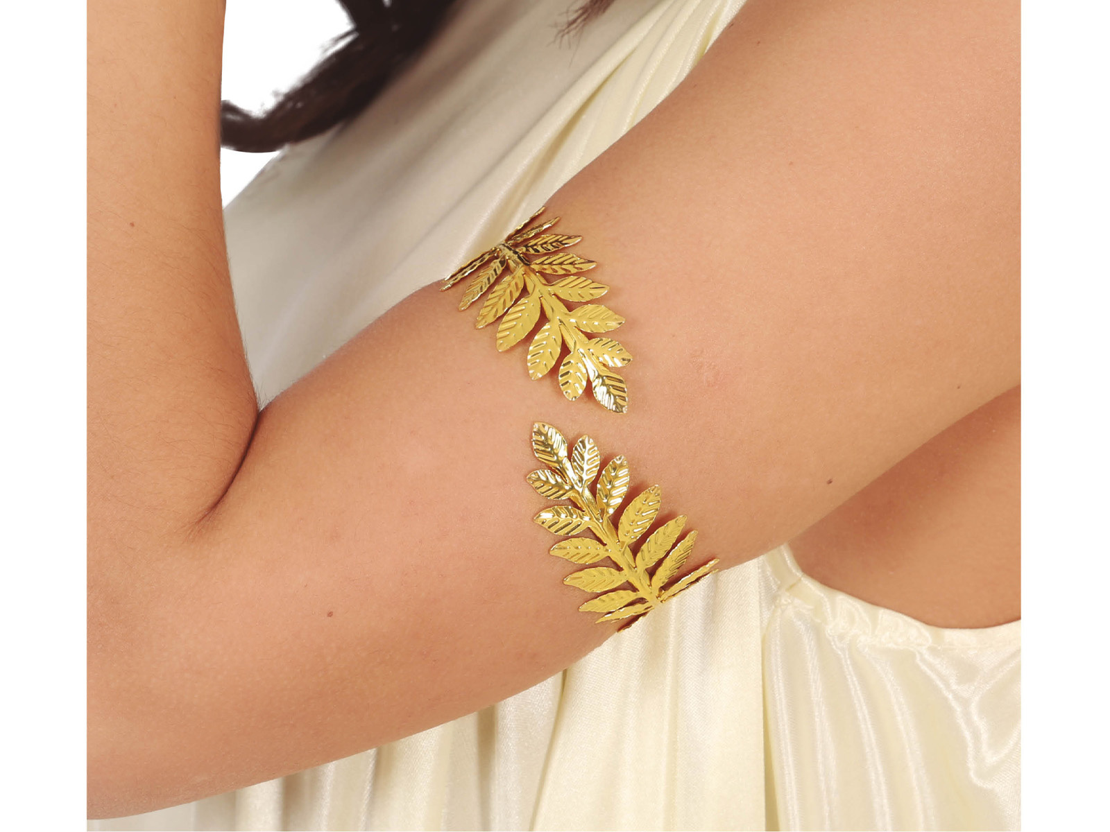 Bemutatjuk az exkluzív Arany babérlevél karszalagot. Ez egy egyedülálló kiegészítő, amely visszaviszi Önt az ókori Rómába. A részletekbe menően kidolgozott motívum a babérlevelekre emlékeztet, amelyek az ókorban a győzelem és a méltóság jelképei voltak. Ez a karkötő nemcsak gyönyörűen néz ki, hanem fenséges és előkelőséget kölcsönöz bármely történelmi vagy színházi jelmezhez.