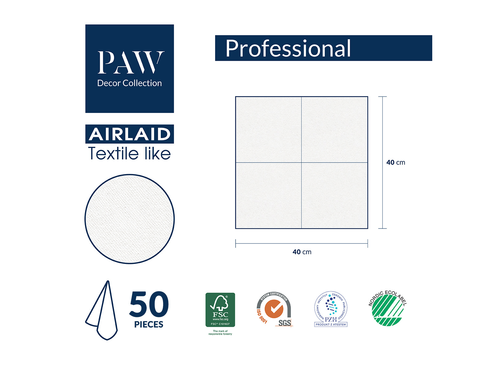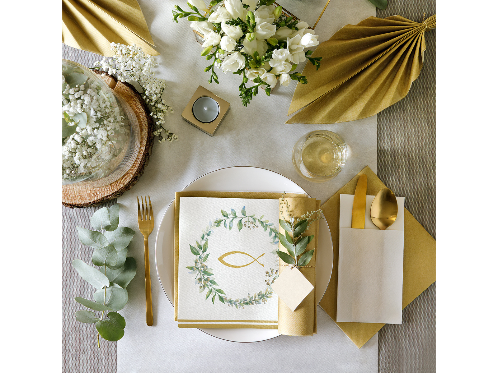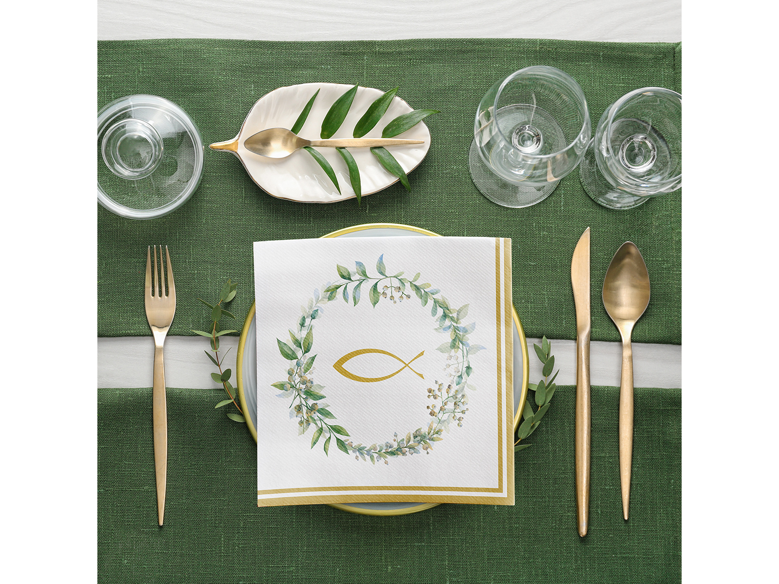 Serwetki komunijne Ryba z listkami - 40 cm - 50 szt.
