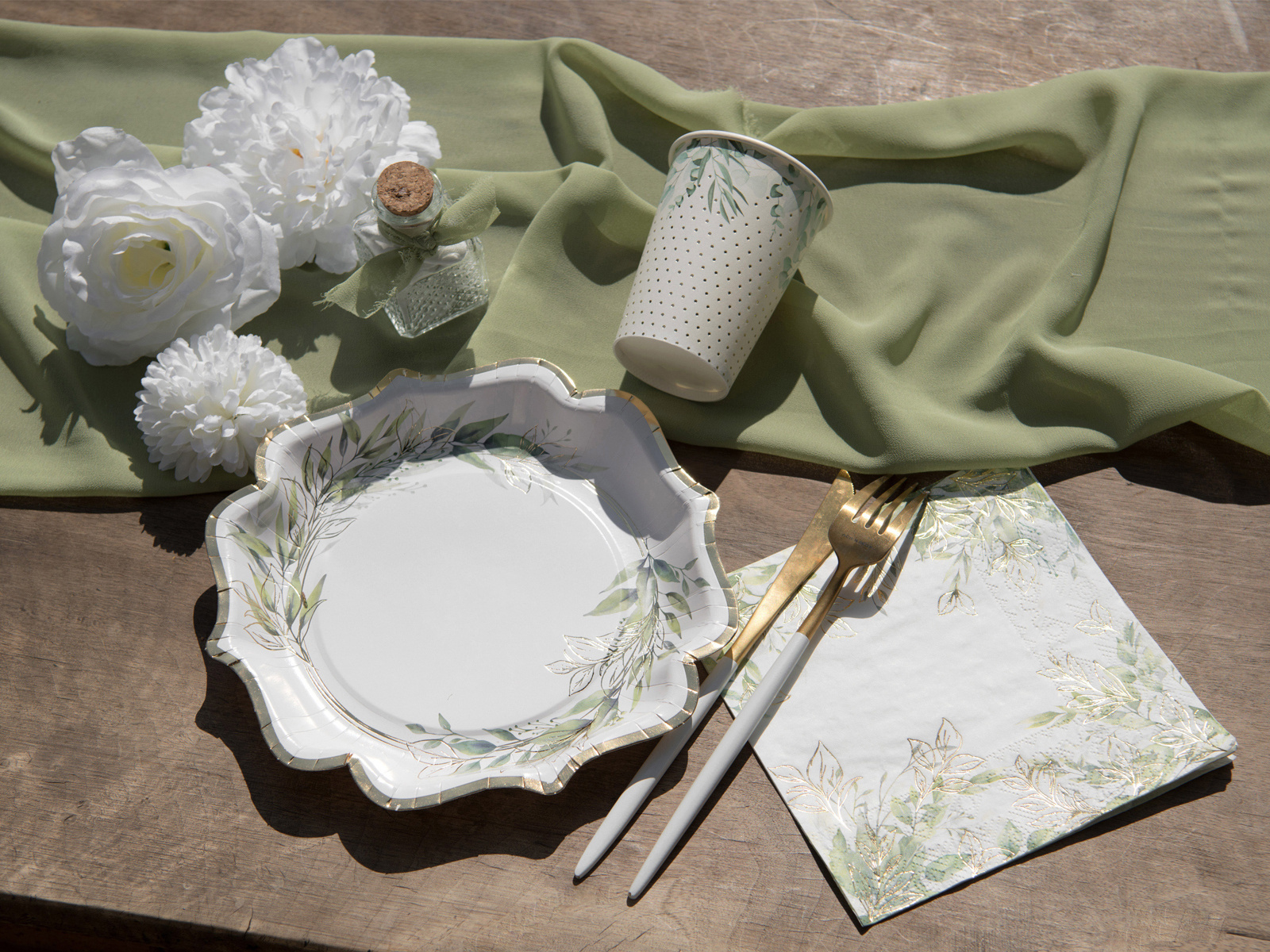 Papírszalvéta zöld levelekkel - 33 cm - 20 db.