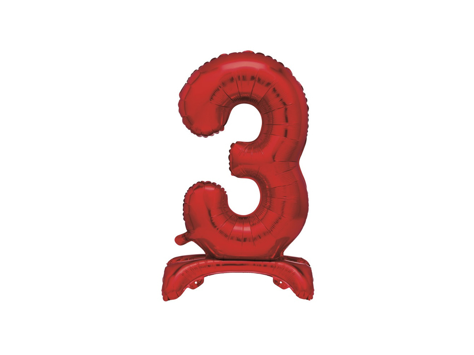 Fólia lufi álló 3-as szám piros - 76 cm - 1db.