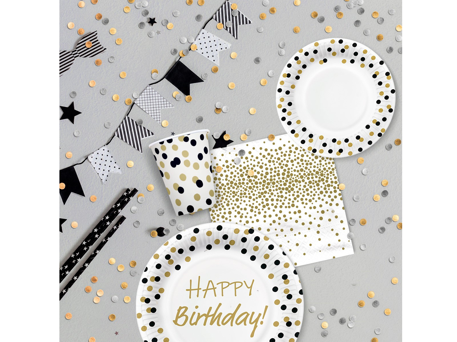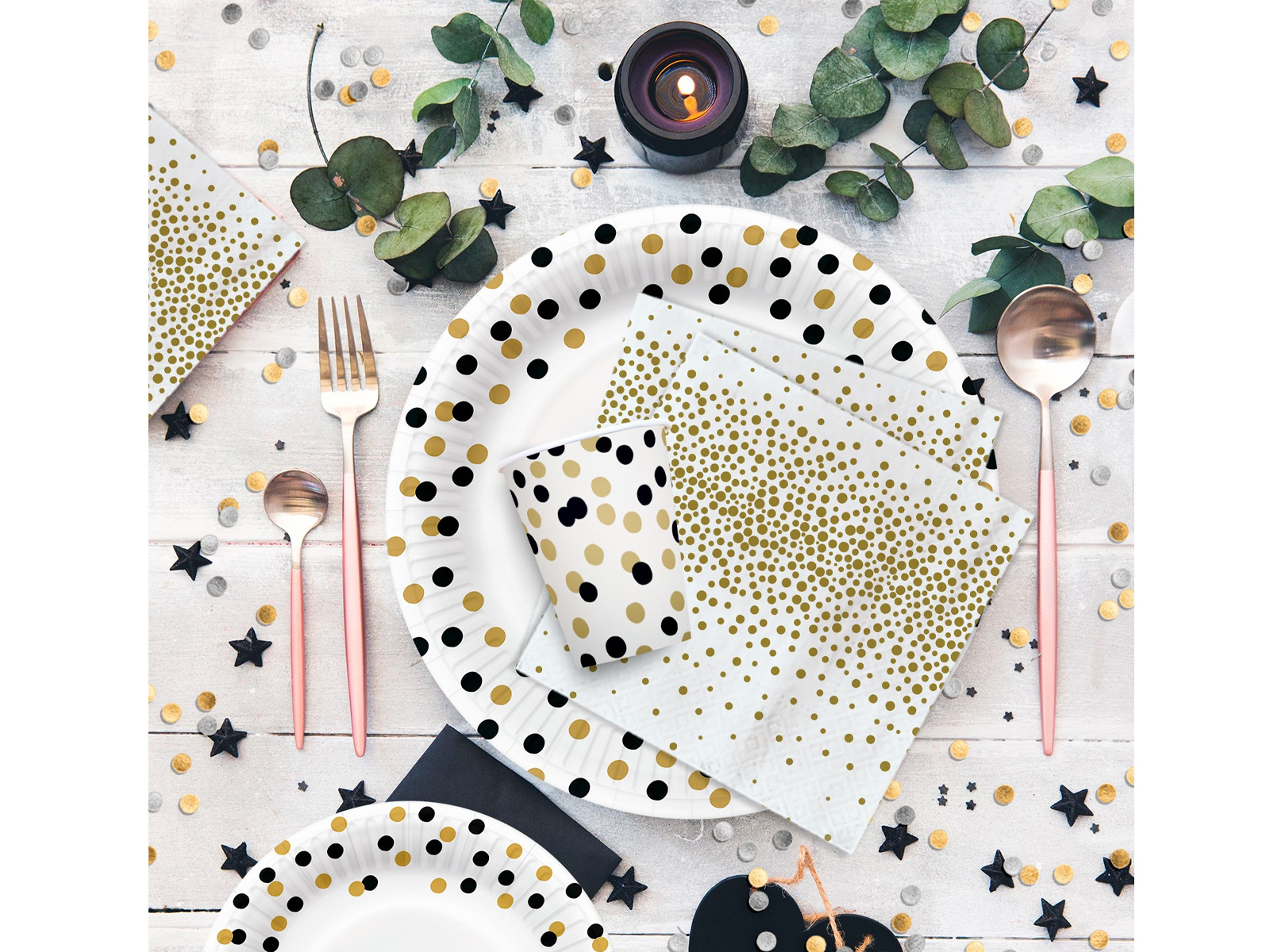 Konfetti papírpoharak arany és fekete - 250 ml - 8 db.