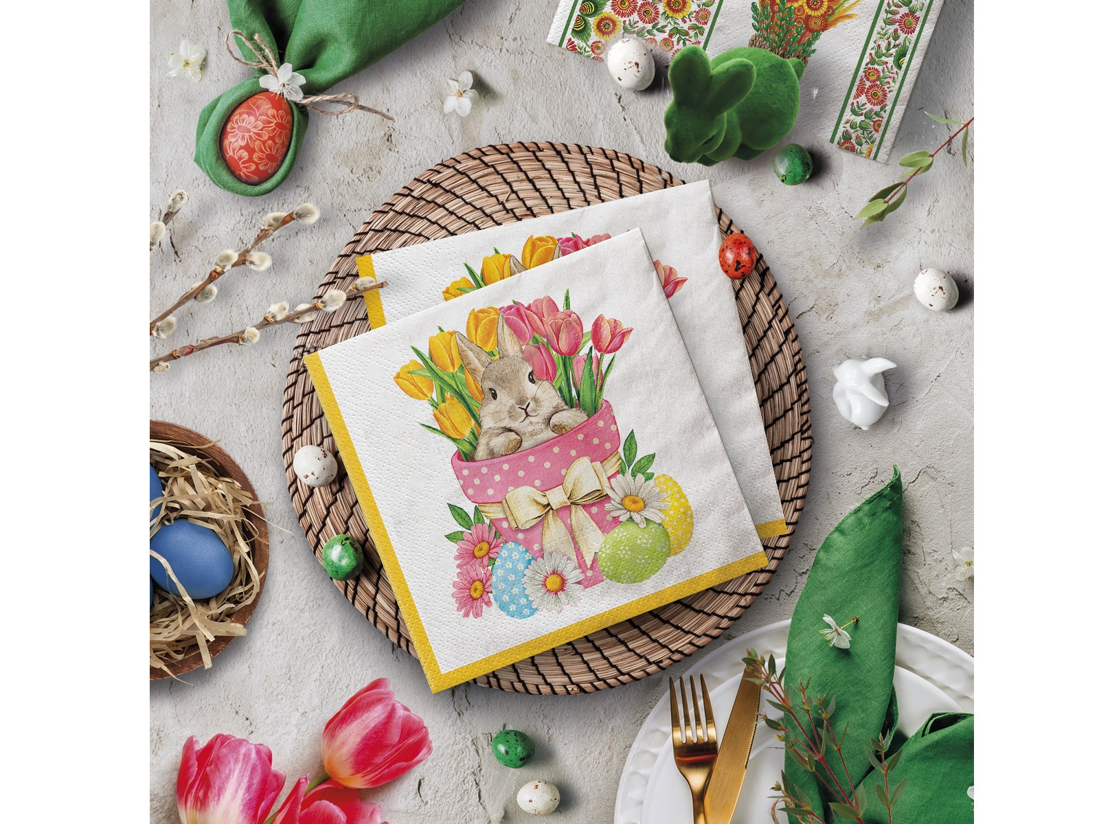 Serwetki wielkanocne Zajączek w tulipanach - 33 cm - 20 szt.
