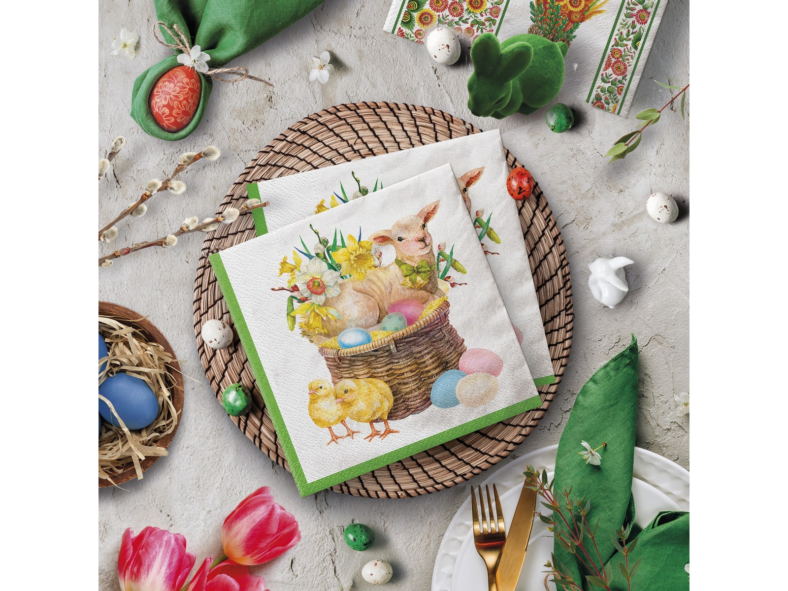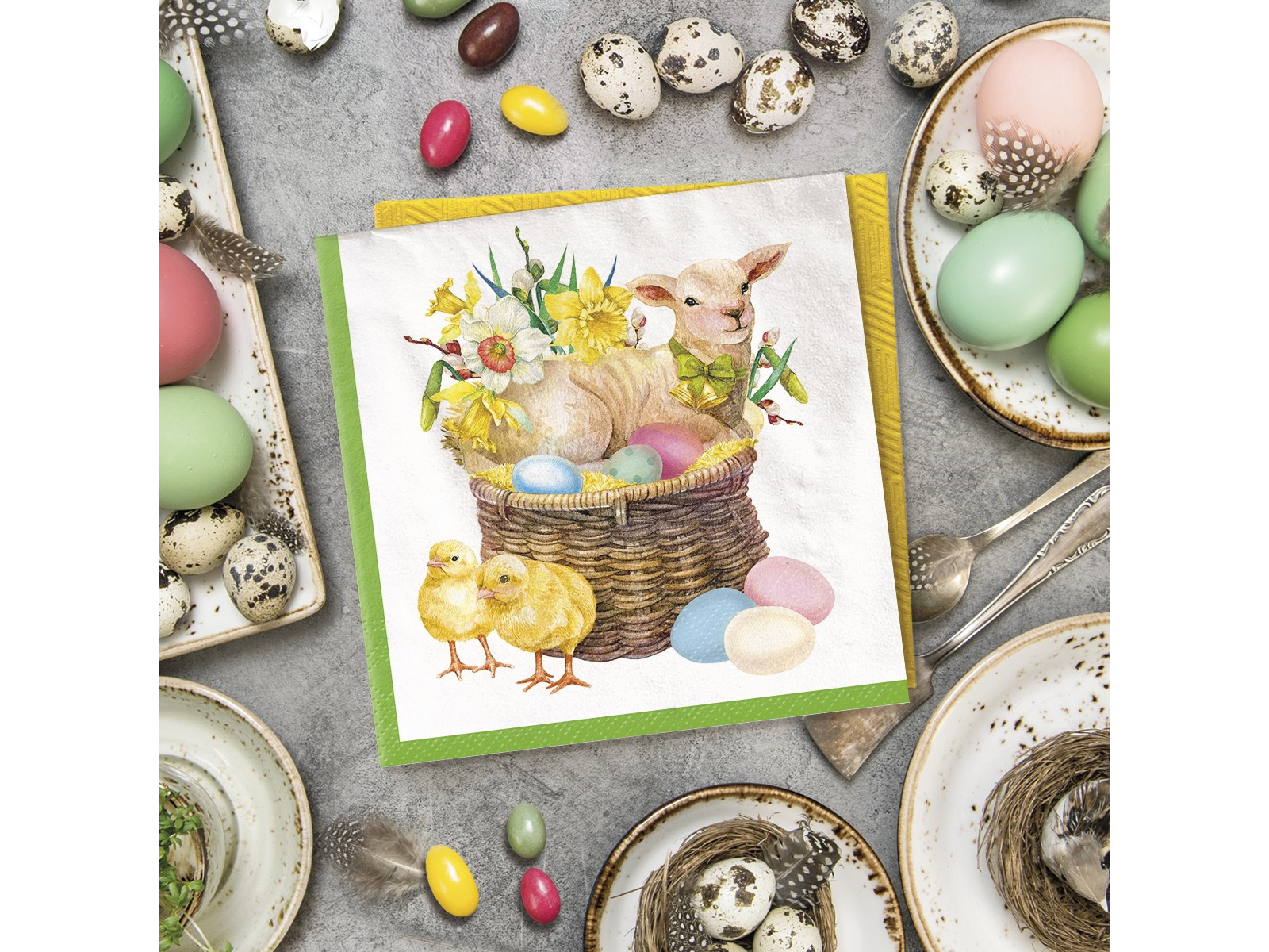 Serwetki wielkanocne Owieczka w koszyczku - 33 cm - 20 szt.