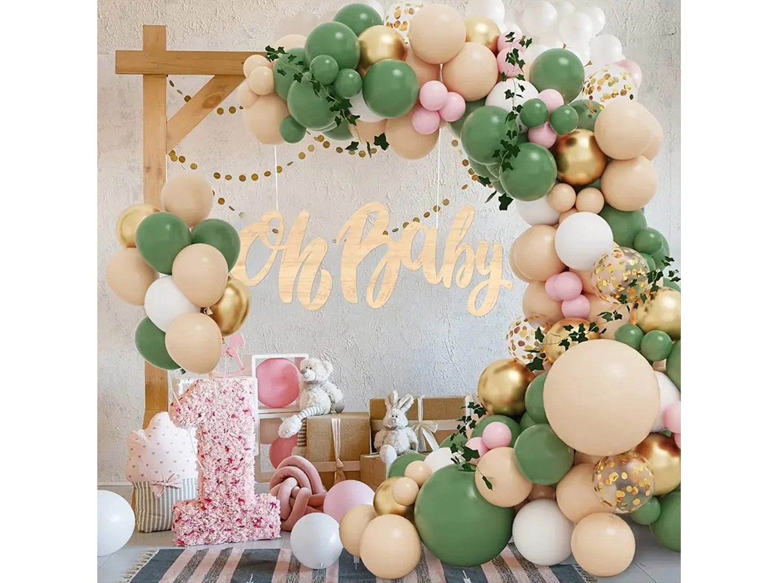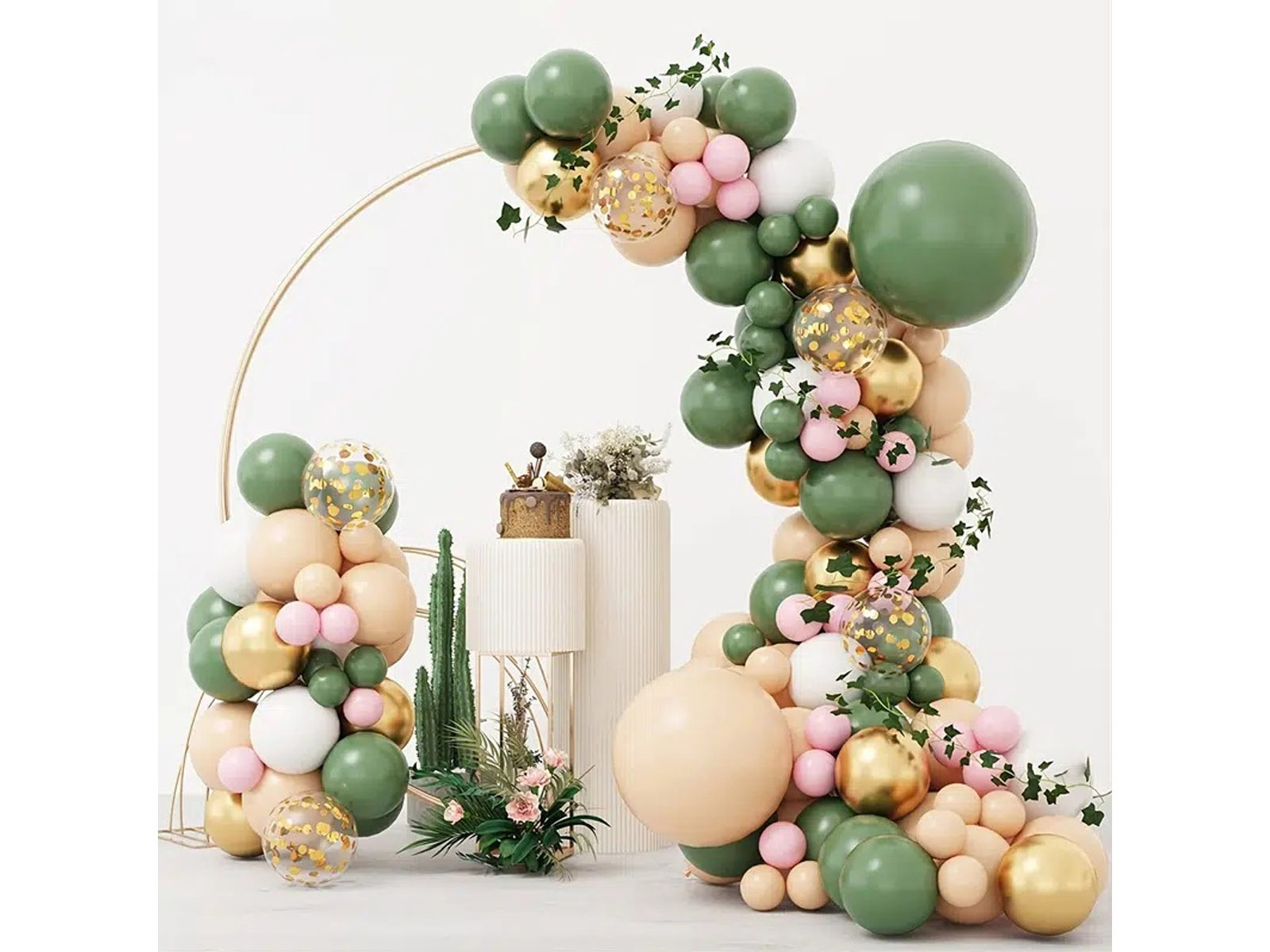 Léggömb készlet lufi füzérhez zöld-bézs arany - 150 db.