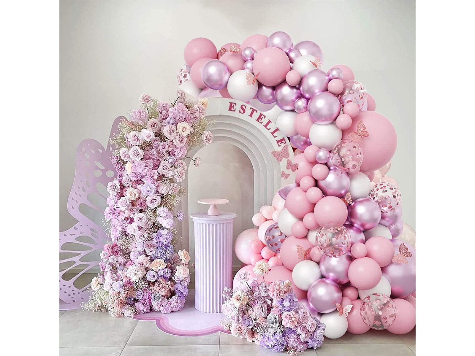 Léggömb girland léggömb készlet rózsaszín és lila - 124 db.