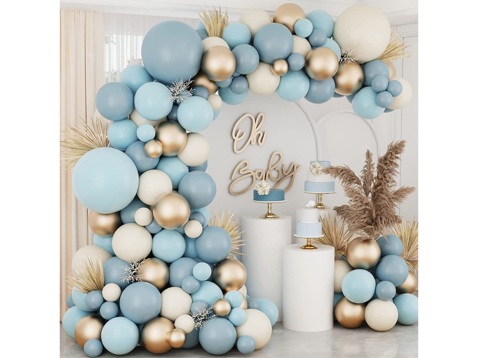 Kék, krém és arany lufi girland lufi készlet - 132 db.