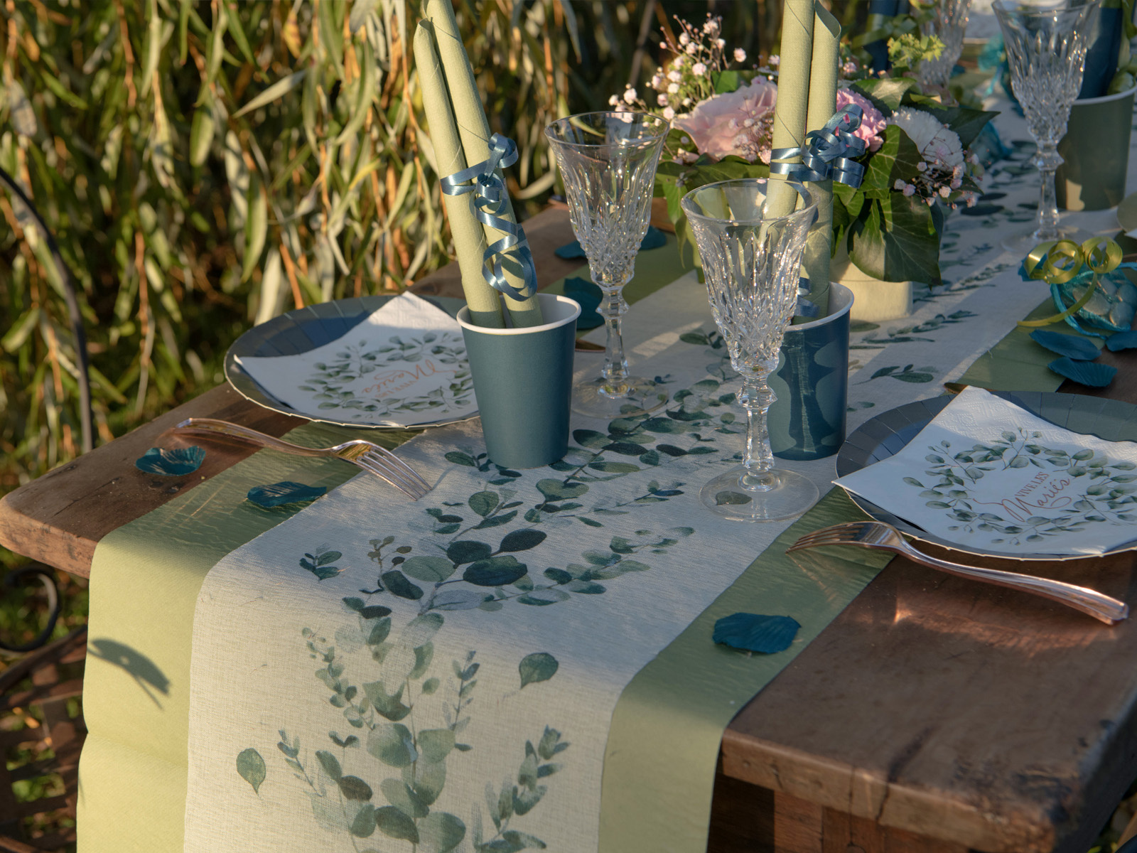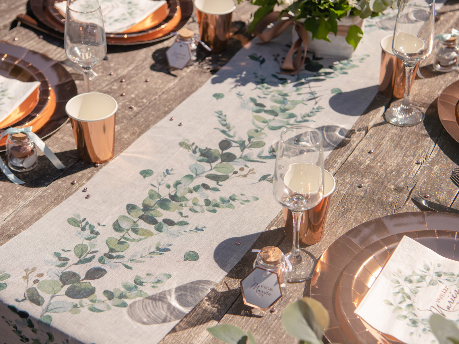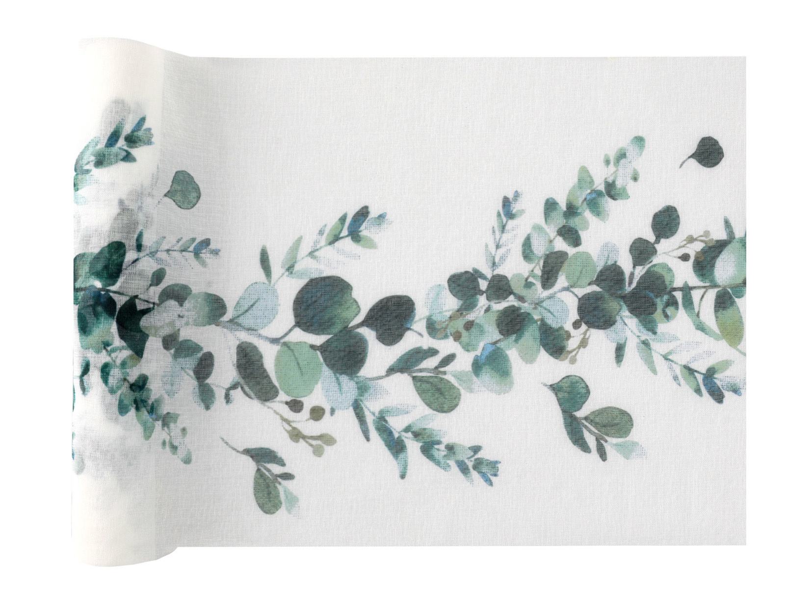 Eukaliptusz levelekkel díszített asztali futó - 26 cm x 3 m - 1 db.