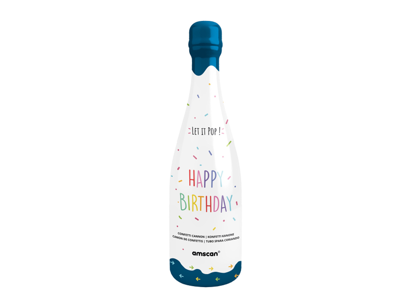 Tuba strzelająca butelka szampana niebieska - 32 cm - 1 szt.