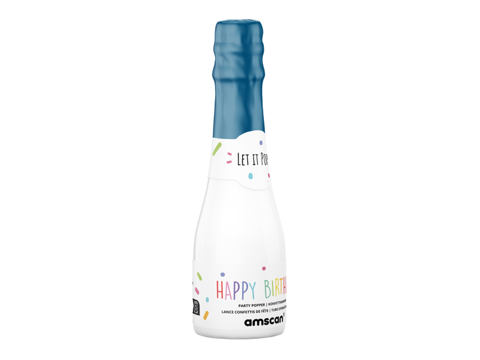 Tuba strzelająca butelka szampana niebieska - 16 cm - 1 szt.