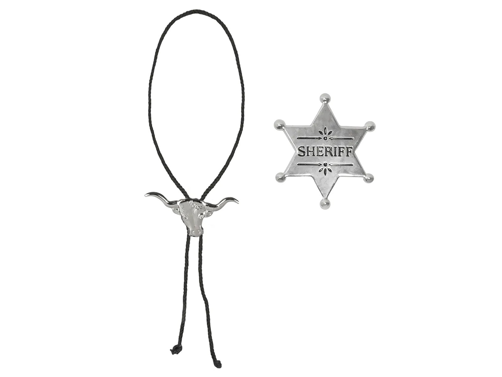 Érezd magad igazi vadnyugati seriffnek a mi Sheriff készletünkkel! Tökéletes kiegészítője bármely cowboy jelmeznek, hogy autentikusabbá tegye a ruháját. A készlet tartalmaz egy fényes sheriff jelvényt és egy elegáns nyakláncot, amelyek együtt egy egyedülálló készletet alkotnak.