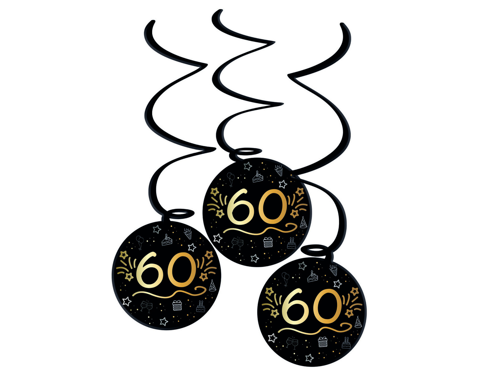 Függő dekorációs örvények hatvanhoz fekete - 3 db.