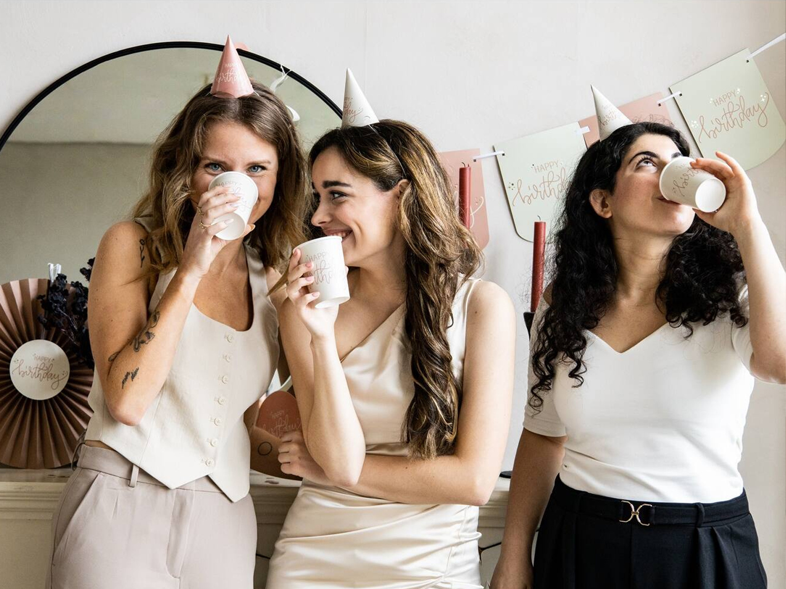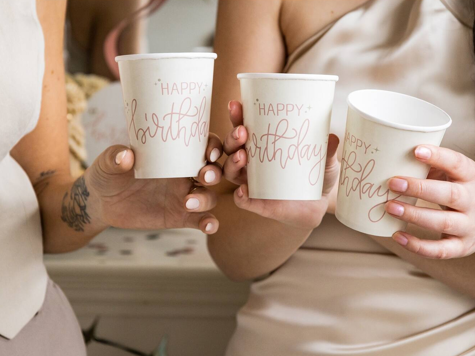 Boldog születésnapot bézs papírpoharak - 250 ml - 8 db.