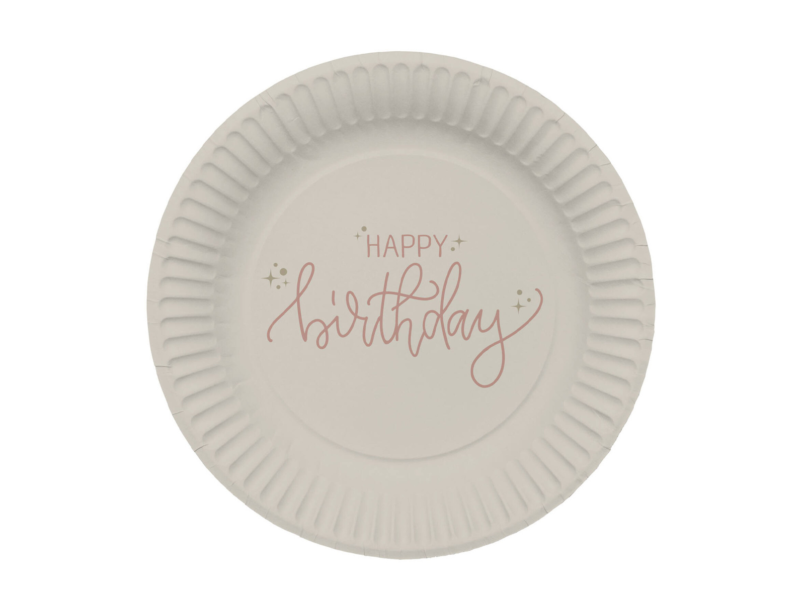 Bézs színű Happy Birthday papírtányér - 23 cm - 8 db.