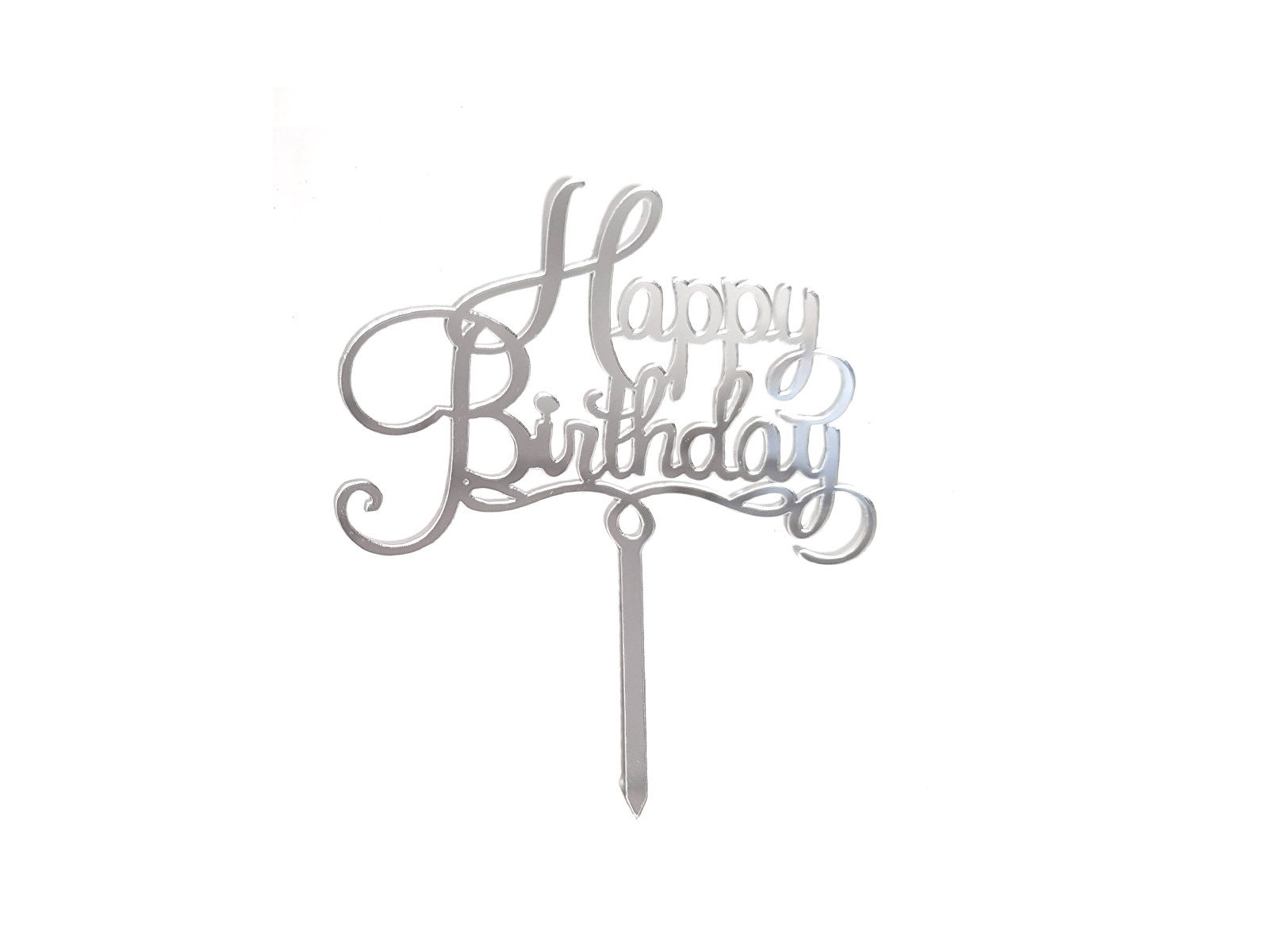 Plexi tortabevonó Boldog születésnapot ezüst - 1 db.