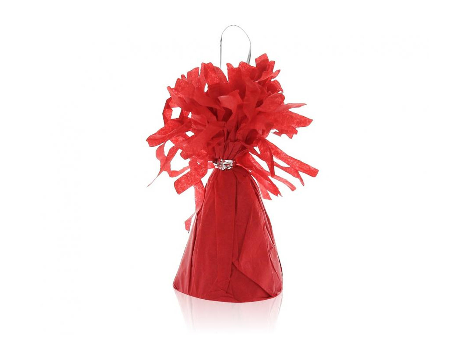 • Dekoratív súly piros színben, amelyhez egy csomó héliummal töltött léggömböt csatolunk.