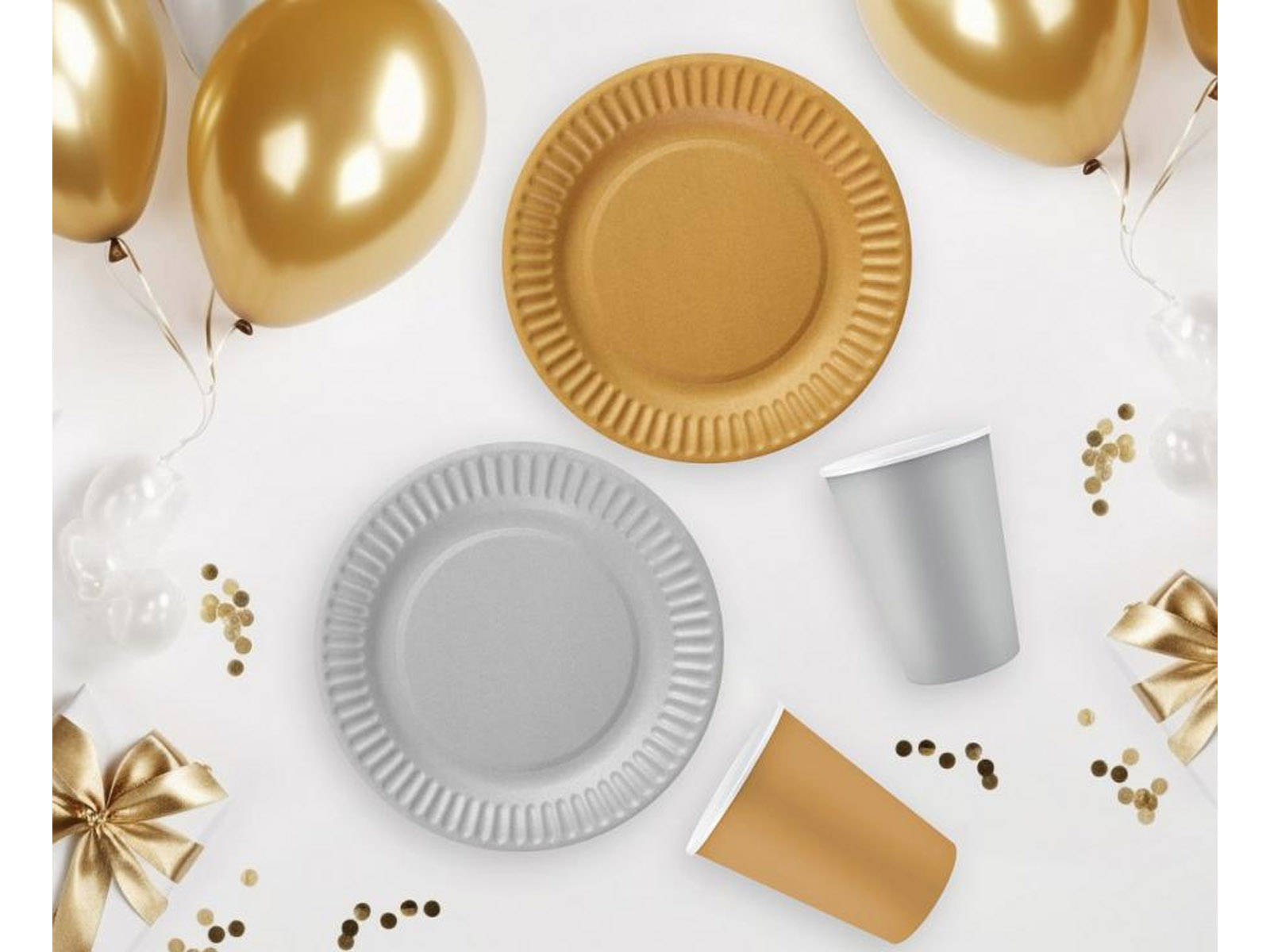 Minden esemény elengedhetetlen része! Papírpoharak arany színben, hogy egy csipetnyi csillogást adjon bármelyik partinak. Ideálisak a következőkhöz születésnapok, szilveszter vagy az új év üdvözlése. A csészék nemcsak szépek, hanem praktikusak is - 250 ml-es kapacitásuk ideális a különféle italokhoz, a forró teáktól a hideg italokig.