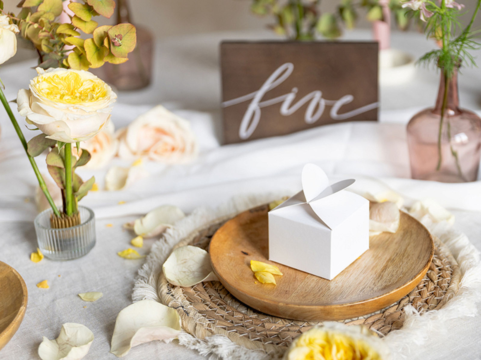 • Fehér vendégdobozok szív alakú záródással.