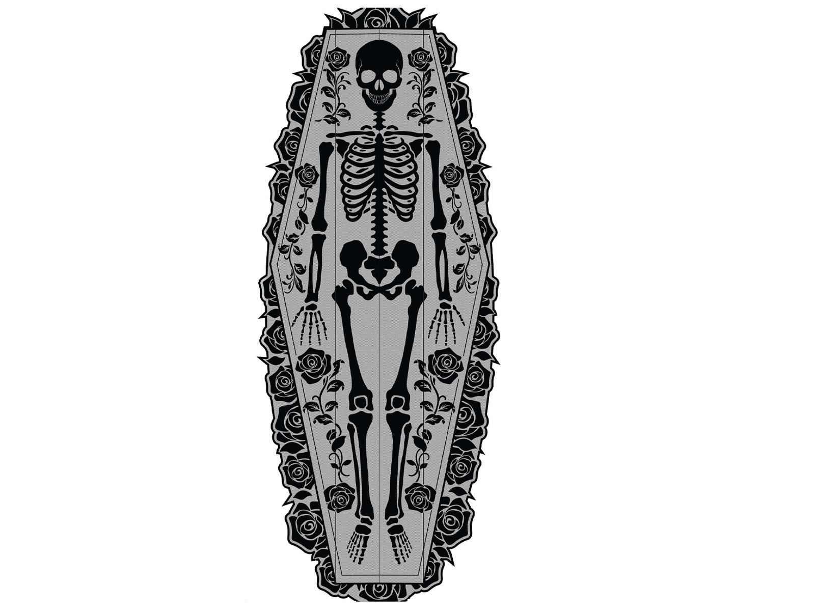 • Koporsó alakú futó csontvázzal, fekete színben.