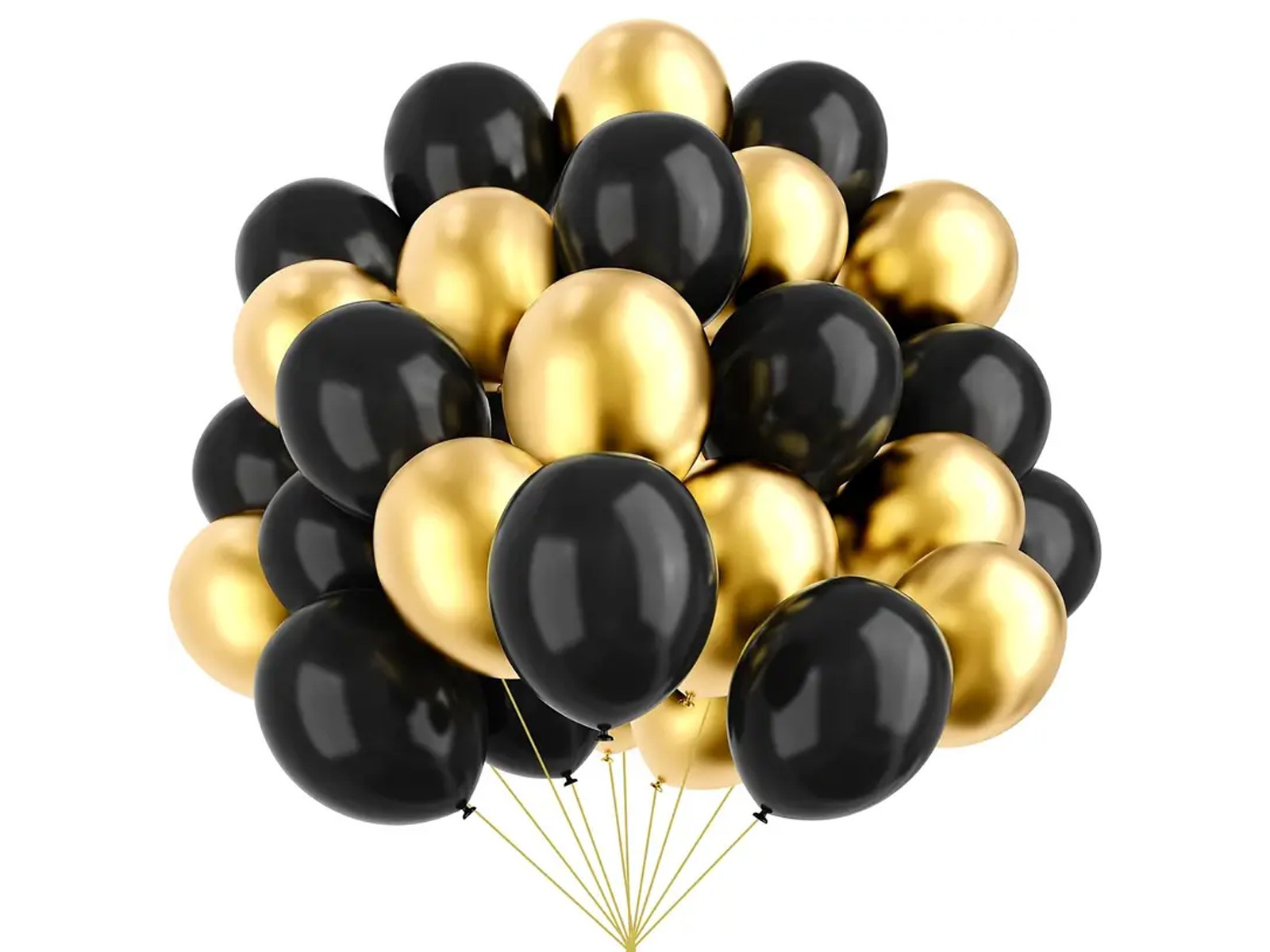 Fekete és arany színű latex lufik készlete - nagy - 100 db.