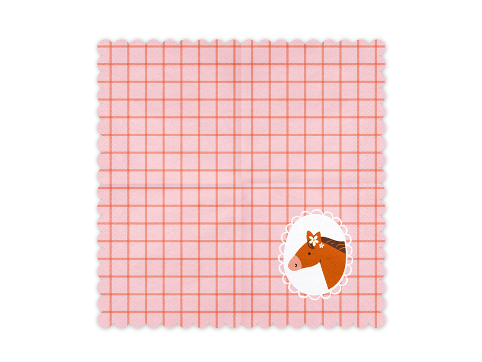 • Születésnapi szalvéták rózsaszínben, kockás mintával és lóval a Horses and Flowers készletből.