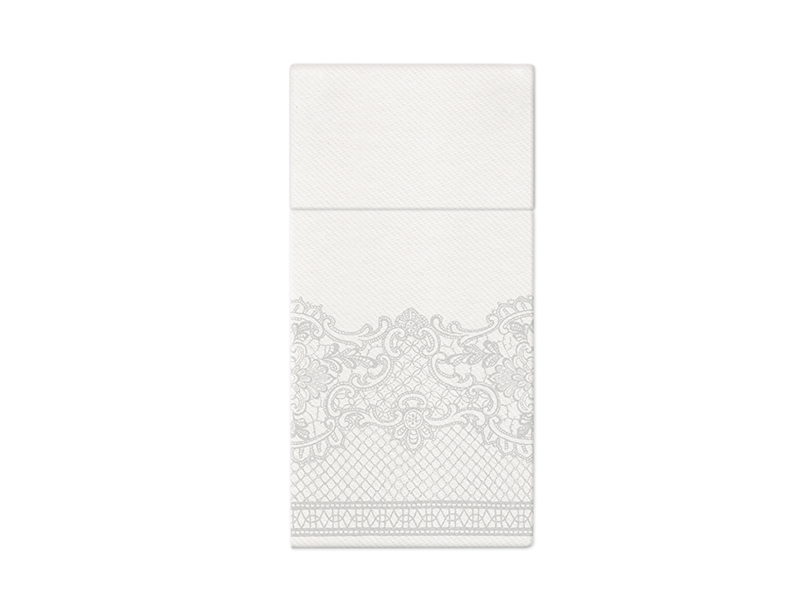 Evőeszköztartó zsebek ezüst csipkemintával - 40 cm - 25 db.
