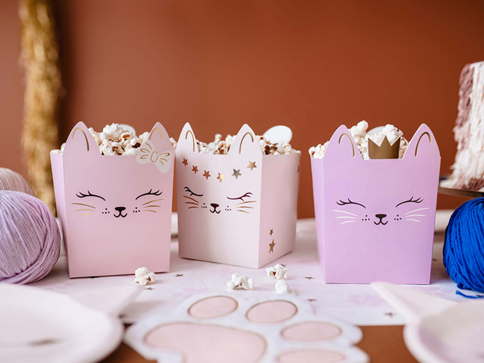 • Papírdobozok popcornhoz és más édességekhez macskák képével.