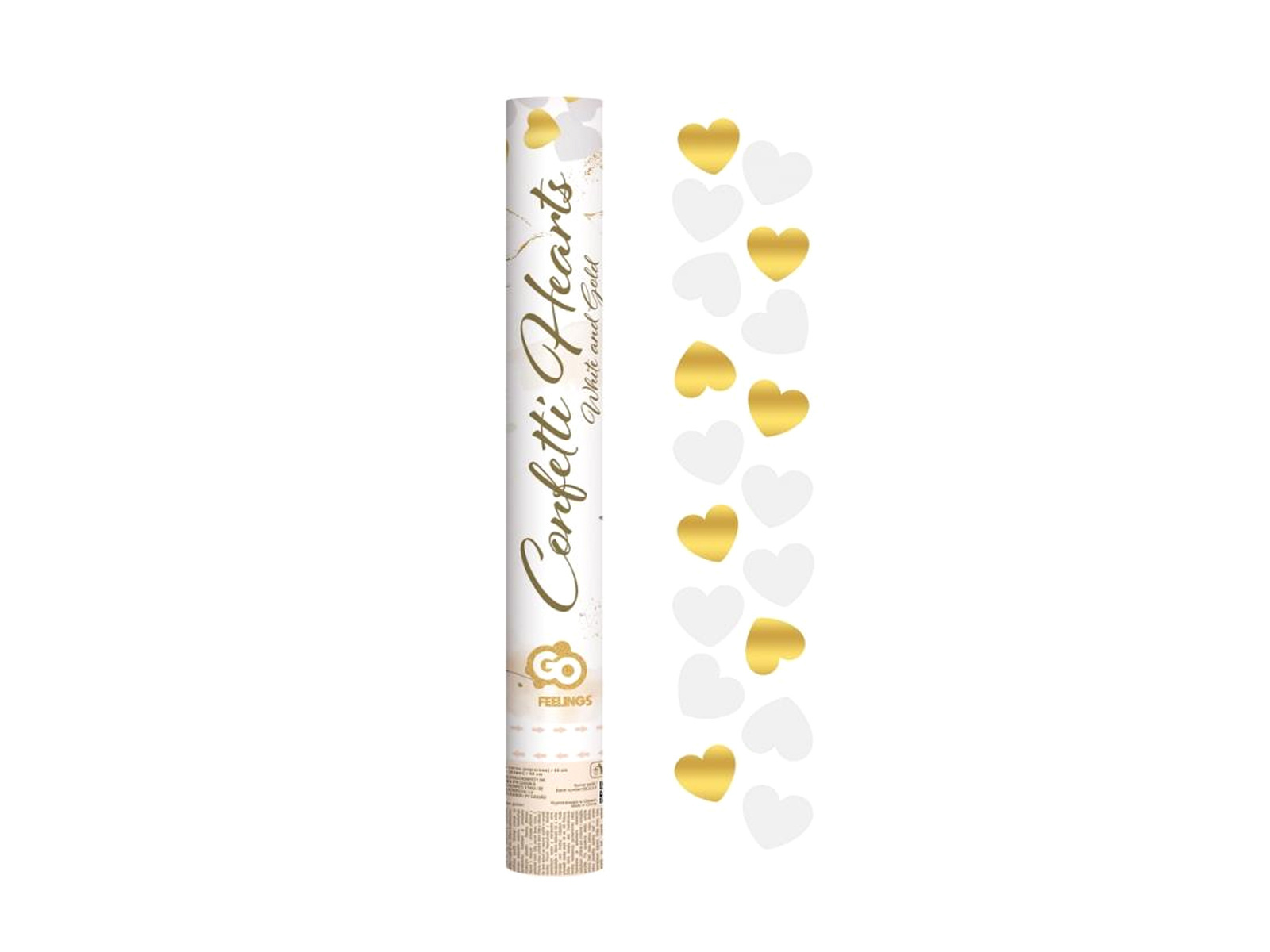 • Tubus lövöldöző fehér és arany konfetti szív alakban.