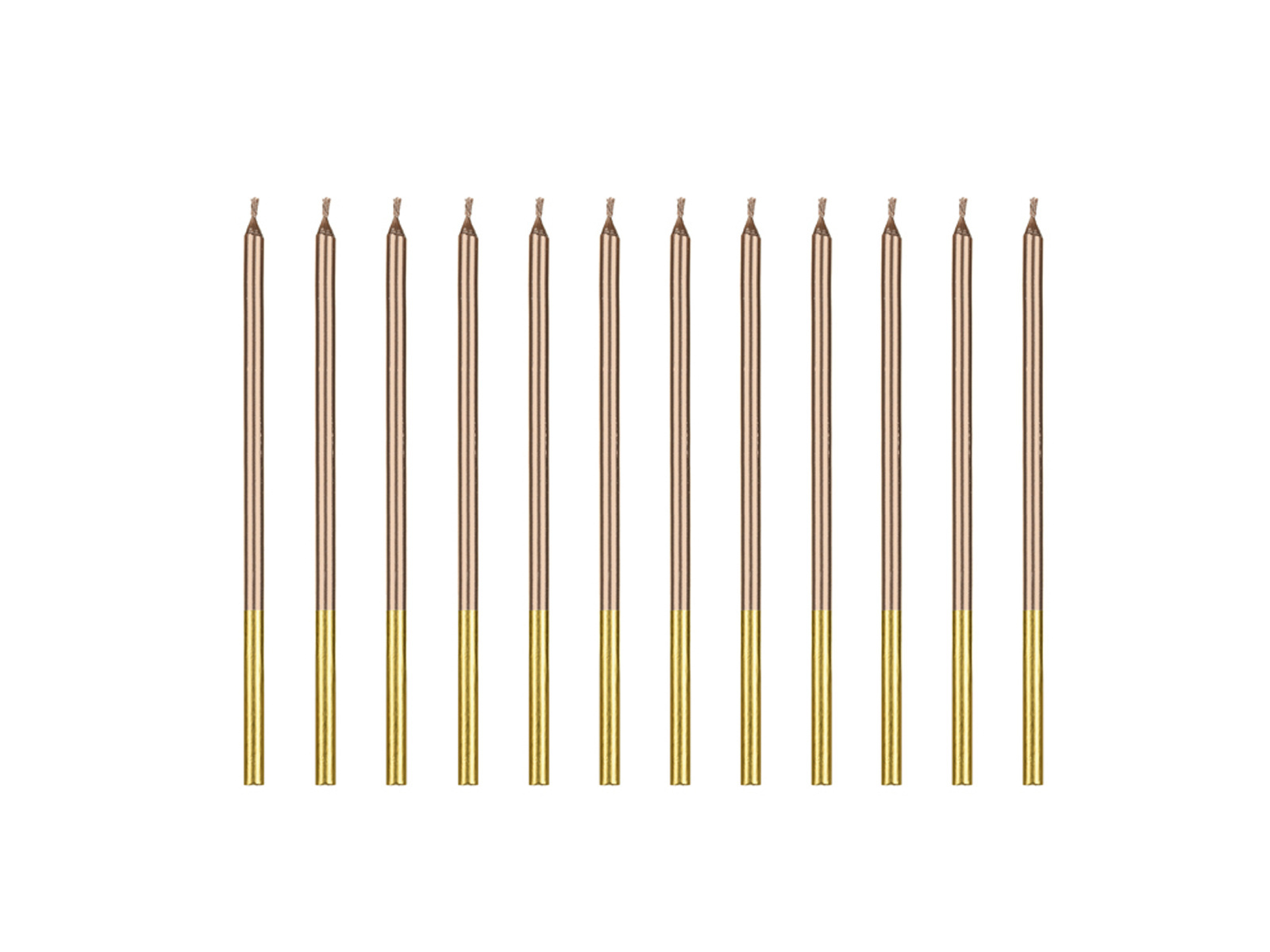 Születésnapi gyertyák rózsaszín arany - 14 cm - 12 db.