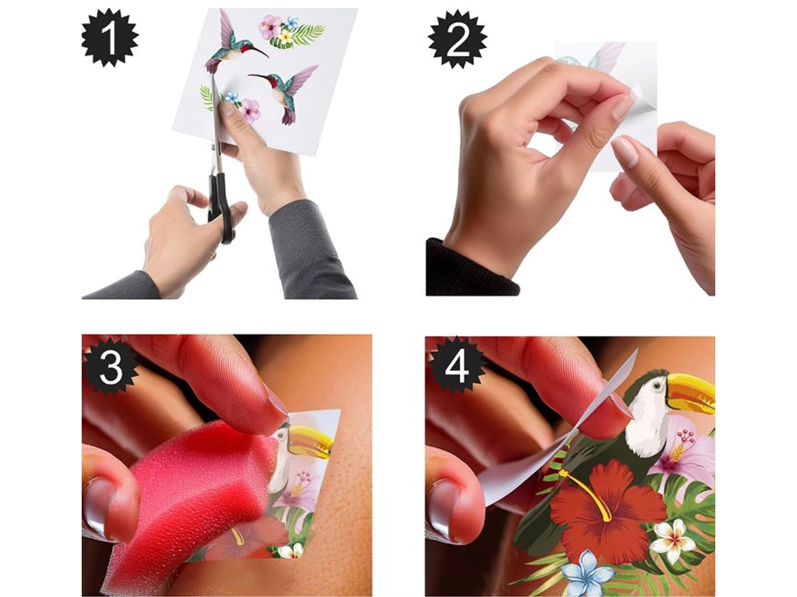 Méretek: 14 x 30 cm, lehetővé teszi a nagyobb minták egyszerű felvitelét is. A tetoválások könnyen felhelyezhetők és eltávolíthatók, így hangulat vagy alkalom szerint változtathatók.