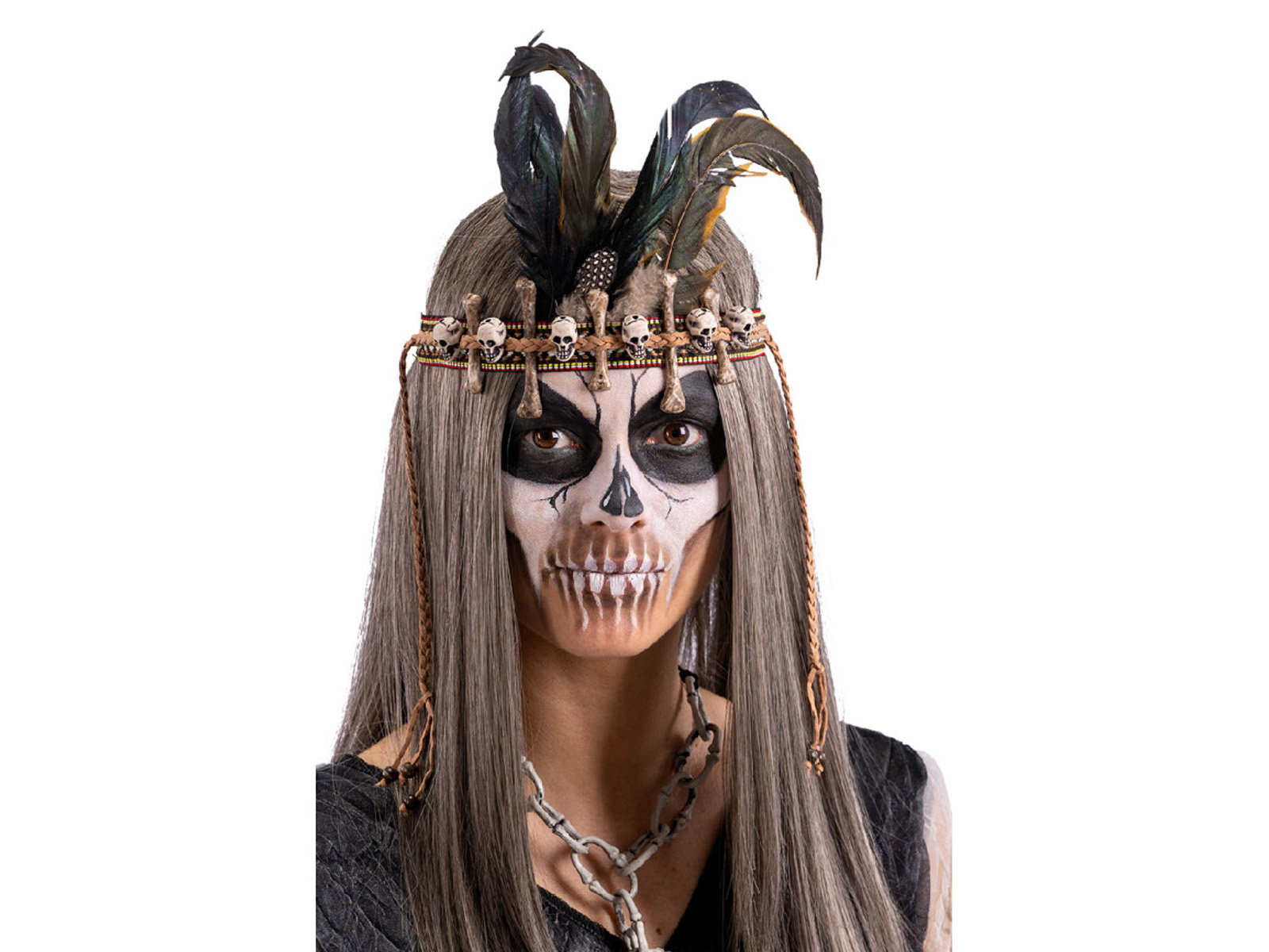 Merüljön el a Halloween sötét hangulatában a mi Voodoo fejpántunkkal. Ez az egyedi, hitelesnek tűnő tollakkal és csontokkal díszített fejkiegészítő felejthetetlenül feldobja a jelmezét. Ideális mindenkinek, aki ki akar tűnni egy Halloween-partin vagy tematikus rendezvényen.