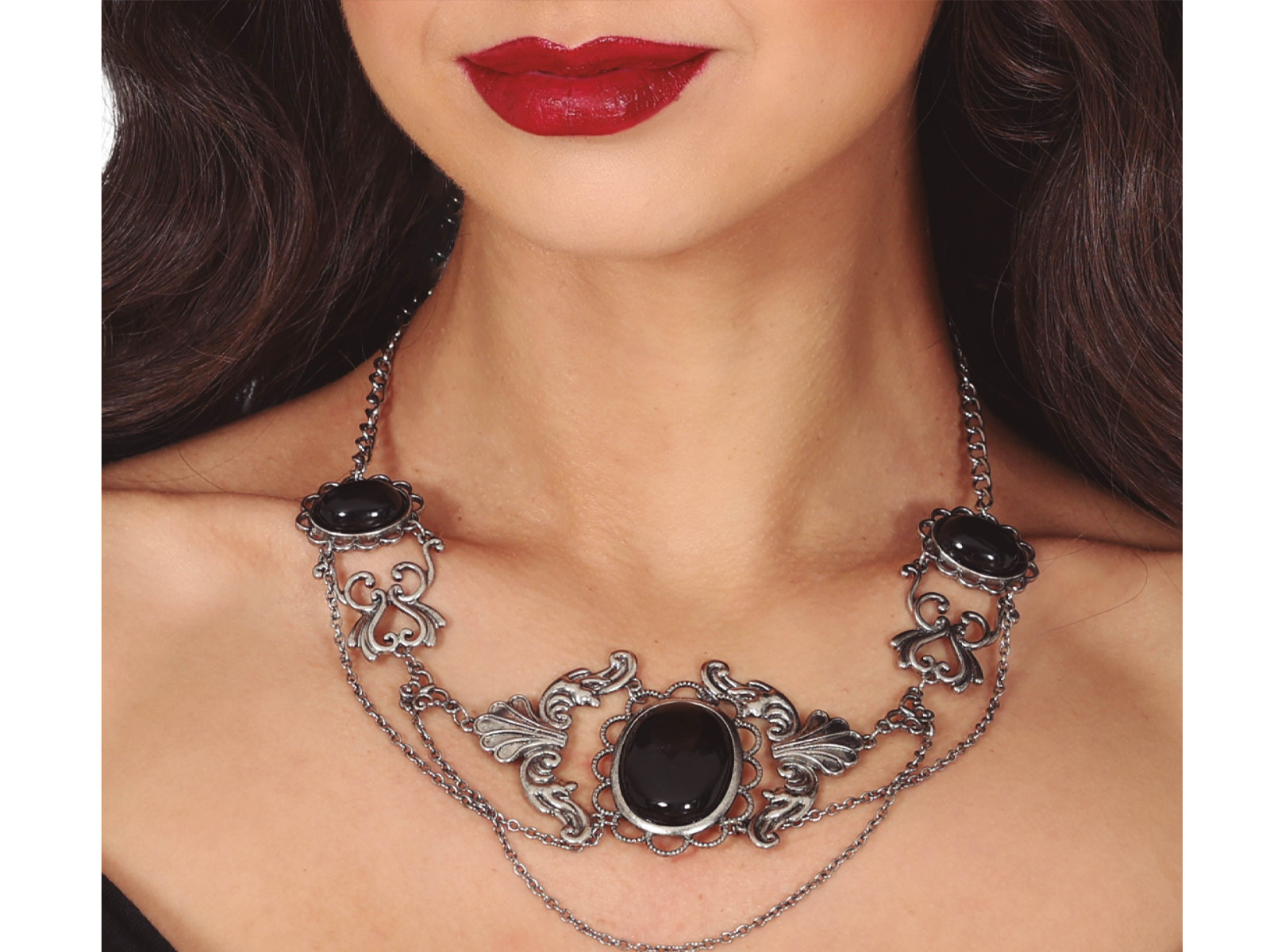 • Gótikus nyaklánc fekete kövekkel, tökéletes kiegészítő Halloweenhez.