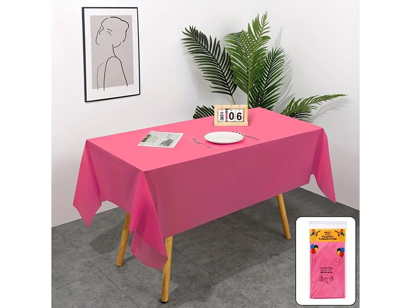 Sötét rózsaszín fóliás terítő - 137 x 274 cm - 1 db.