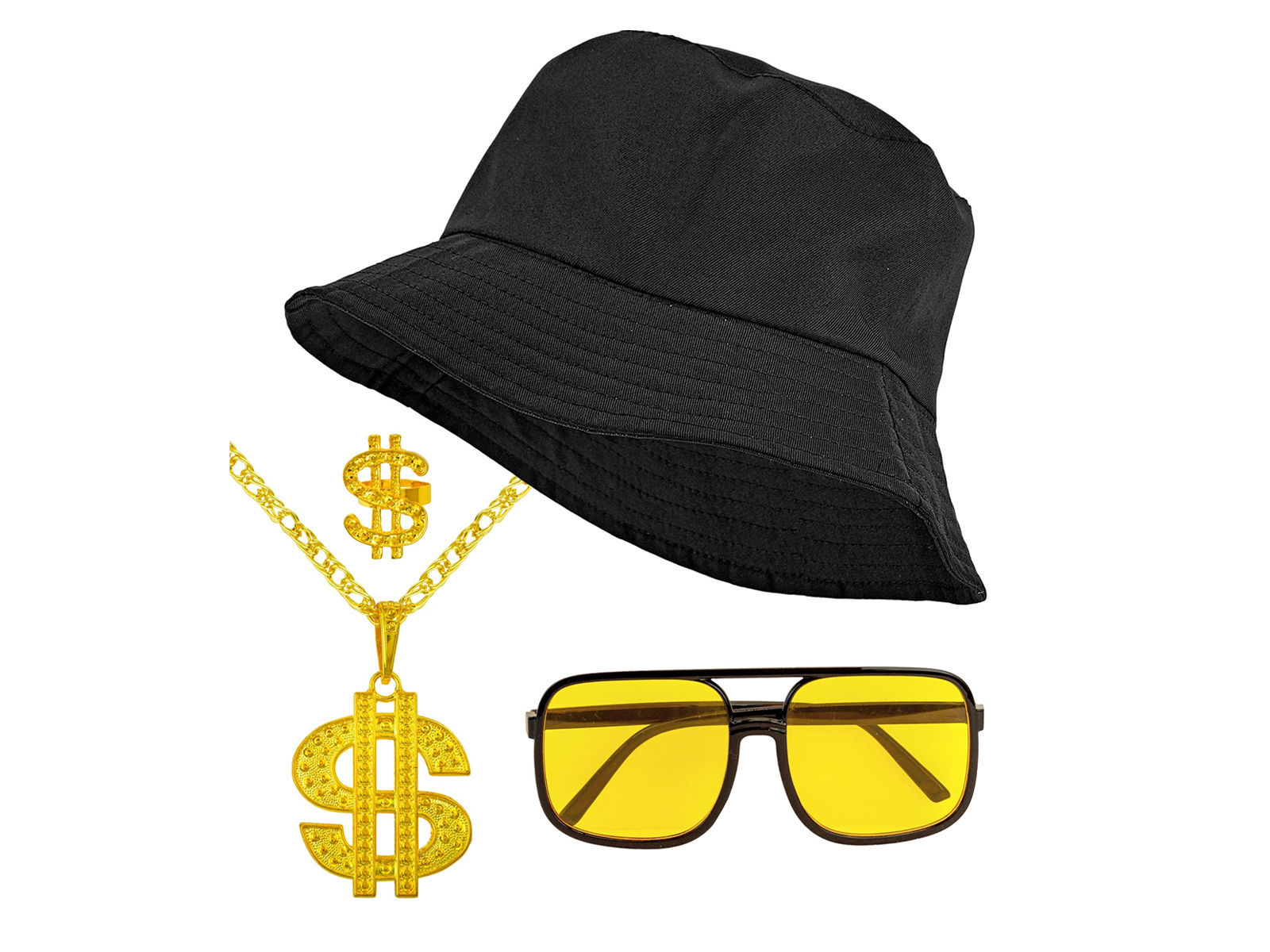 Utazzon vissza az időben a 90-es évek ikonikus hip-hop korszakába!. exkluzív HIP-HOP szett - 4 darab. A tökéletesen szabott kiegészítők lehetővé teszik, hogy egy ikonikus rapper vagy strici szerepébe bújjon bármilyen tematikus partin, leány- vagy legénybúcsún.