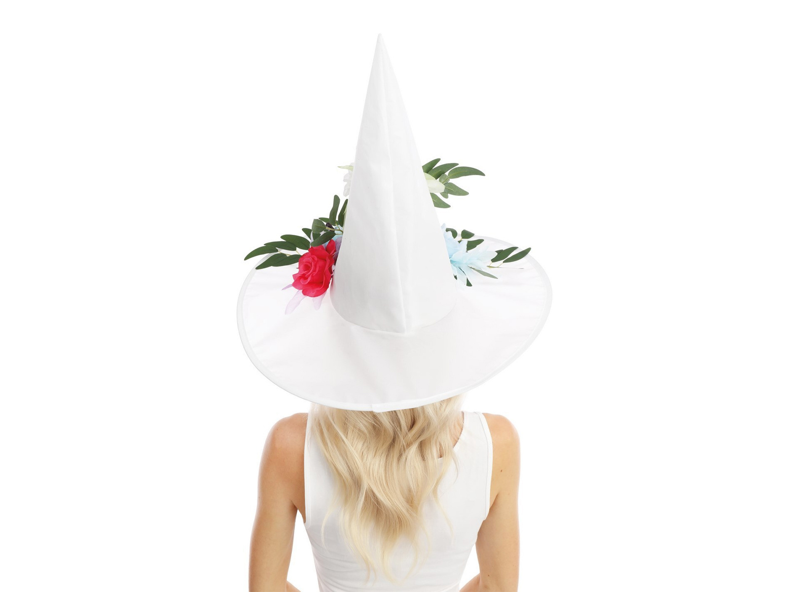 Alakítsd át magad egy titokzatos boszorkánnyá a közelgő Halloween vajon Andrzejki az egyedi kalapunknak köszönhetően! A részletekre odafigyelve készült, egyedi fehér színű, színes virágokkal és egy szemet gyönyörködtető koponyával díszített termék egyedülálló módon egészíti ki a jelmezstílusát.