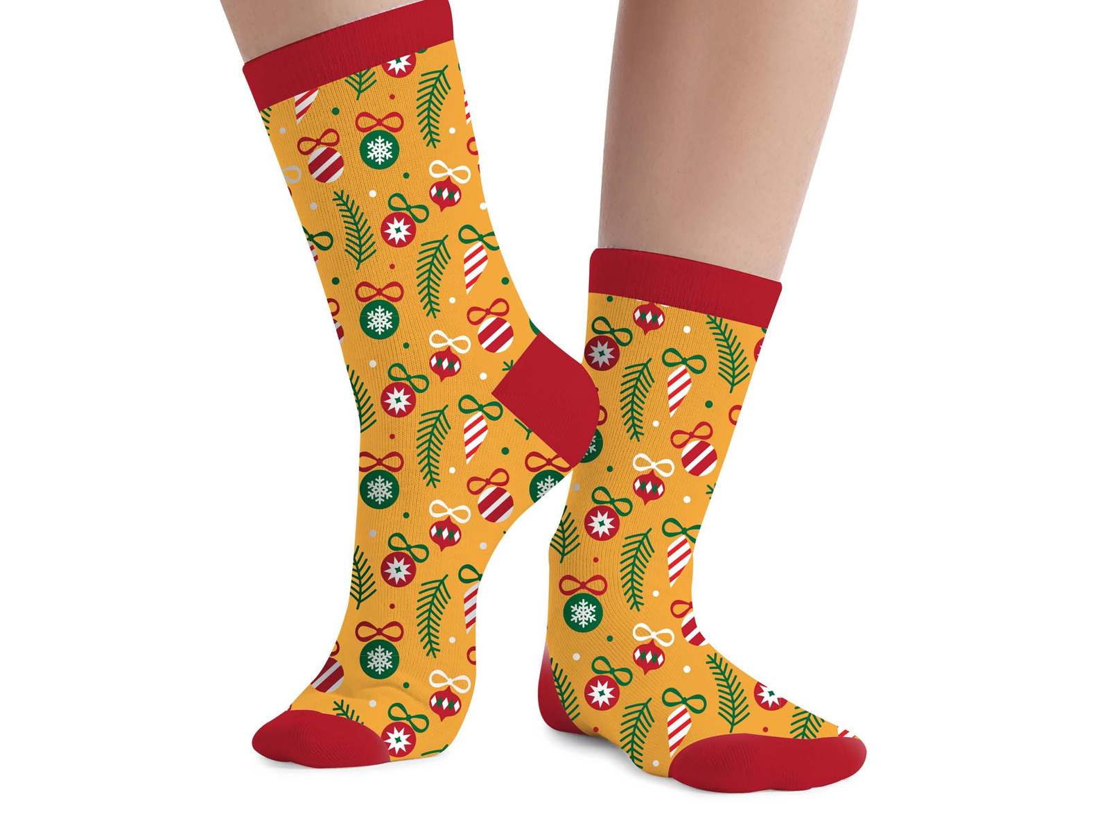 Élvezze a karácsony varázsát minden egyes lépésnél az egyedi zoknik segítségével "Bombák". Ezek a színes, karácsonyfa gömbökkel nyomtatott zoknik tökéletes kiegészítői az ünnepi öltözéknek. Nemcsak ünnepi hangulatba hozzák Önt, hanem kiváló minőségű poliészter anyaguknak köszönhetően kényelmet is biztosítanak.