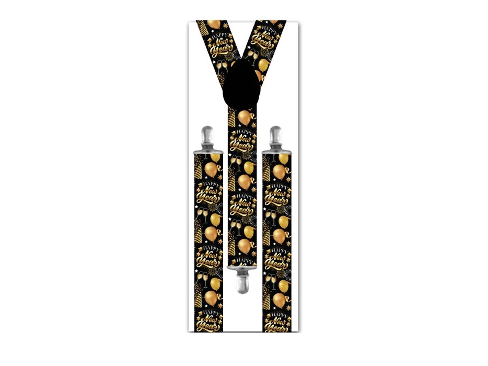 Elegáns fekete színben, arany nyomattal, ezek a nadrágtartók biztos, hogy egy kis csillogást adnak a szilveszteri öltözékednek. Ideálisak, mint kiegészítő akcentus jelmezben bármilyen tematikus partira, különösen az 1920-as évek által inspiráltan. Tartós anyagokból készültek és erős békákkal vannak ellátva, így egész éjszaka kényelmes viseletet biztosítanak.