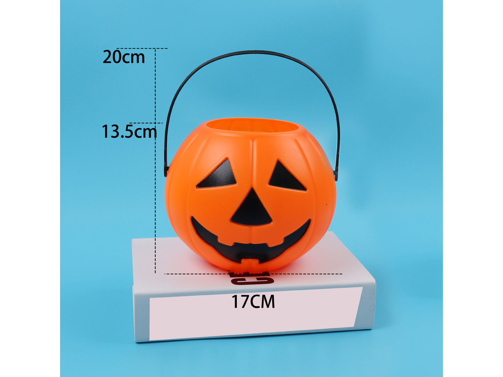 Tartós műanyagból készült, a vödör egy 17 cm átmérőjű i magasság 20 cm fogantyúval a könnyű szállításhoz. Nemcsak praktikus, hanem szemet gyönyörködtető tárgy is, amely a gyerekeket és a vendégeket kísérteties halloweeni hangulatba hozza.