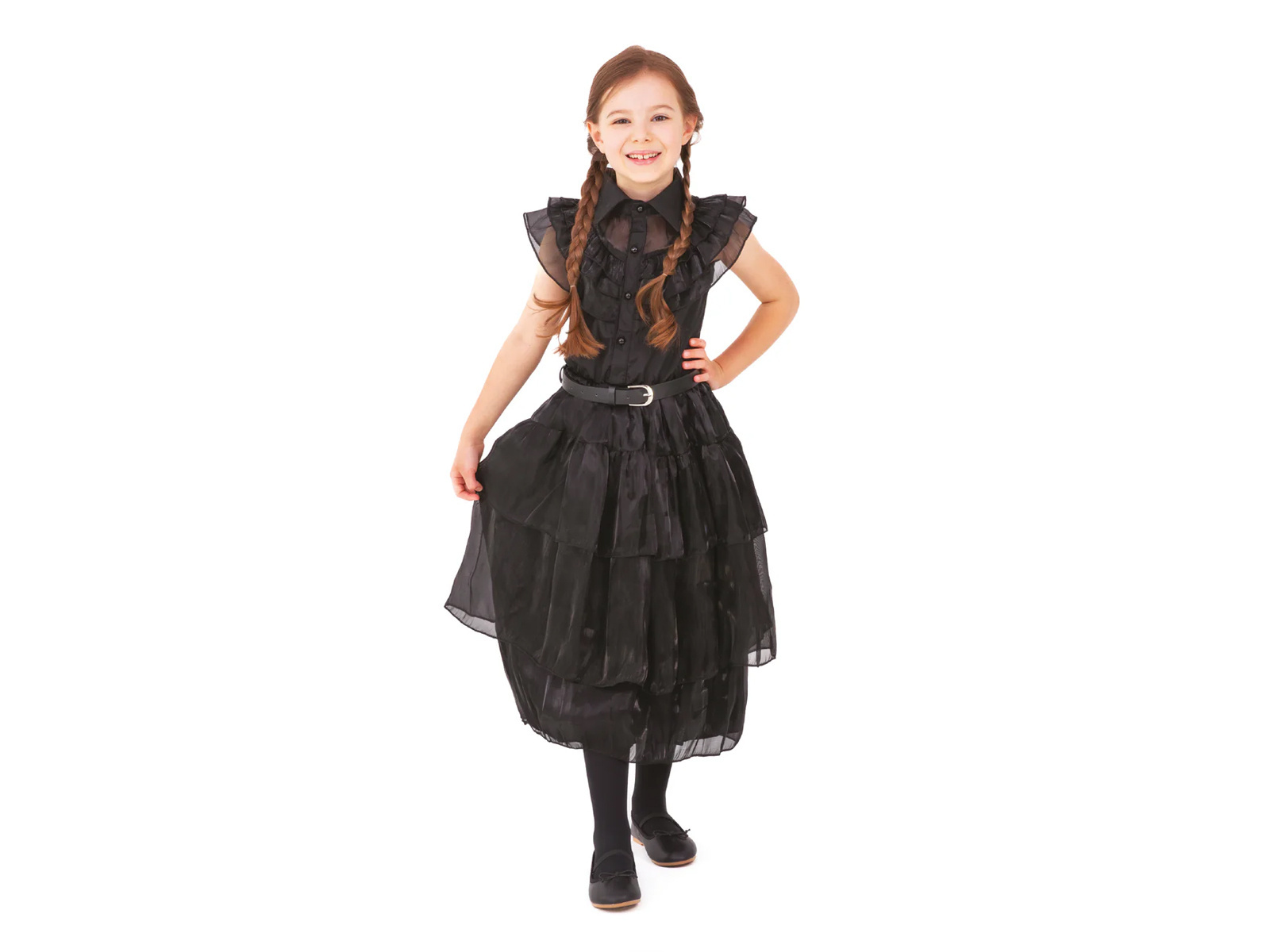 Merülj el egy sötét, misztikus világban a Gótikus iskoláslány jelmez lányoknak. Az Addams család szerda karakterének ihletése egyedi jelleget kölcsönöz ennek a ruhának, amely tökéletes a gótikus stílus kis szerelmeseinek. Ez az álruha tökéletes mindenféle tematikus bulihoz, mint például Halloween, Andrzejki vagy tematikus születésnapok.