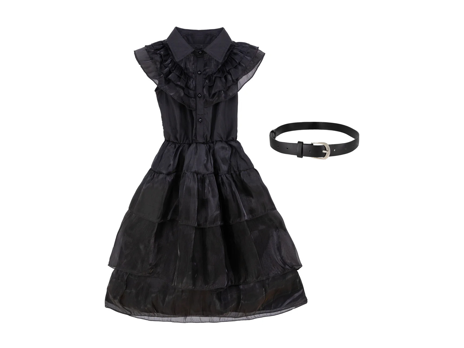 A készlet tartalmaz egy elegáns ruha és a megfelelő szíj, amelyek együttesen egy kifogástalan gótikus megjelenést eredményeznek. A ruha kiváló minőségű poliészterből készült, amely garantálja a kényelmet és a tartósságot. M méretben kapható, hogy tökéletesen illeszkedjen a 120-130 cm magas gyermekek számára.